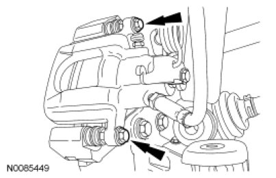 16. Remove the rear brake caliper bolts.