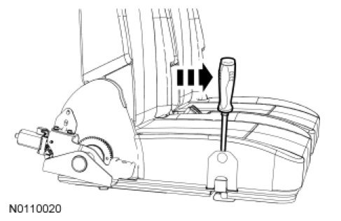 4. Pivot the screwdriver handle toward the front of the seat, releasing the latch.