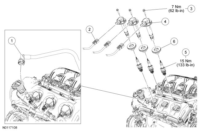 Home >> Ford >> 2011 >> Flex AWD V6-3.5L >> Repair and Diagnosis >> Powertrain Management >> Ignition System >> Spark Plug >> Service and Repair >> Engine Ignition Components - Exploded View