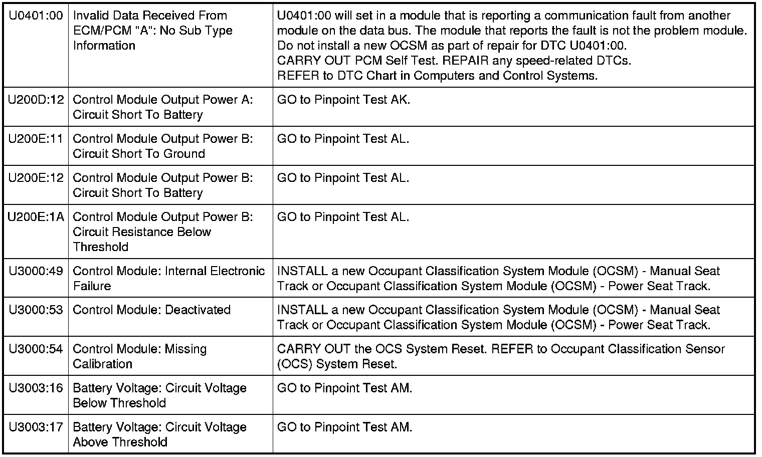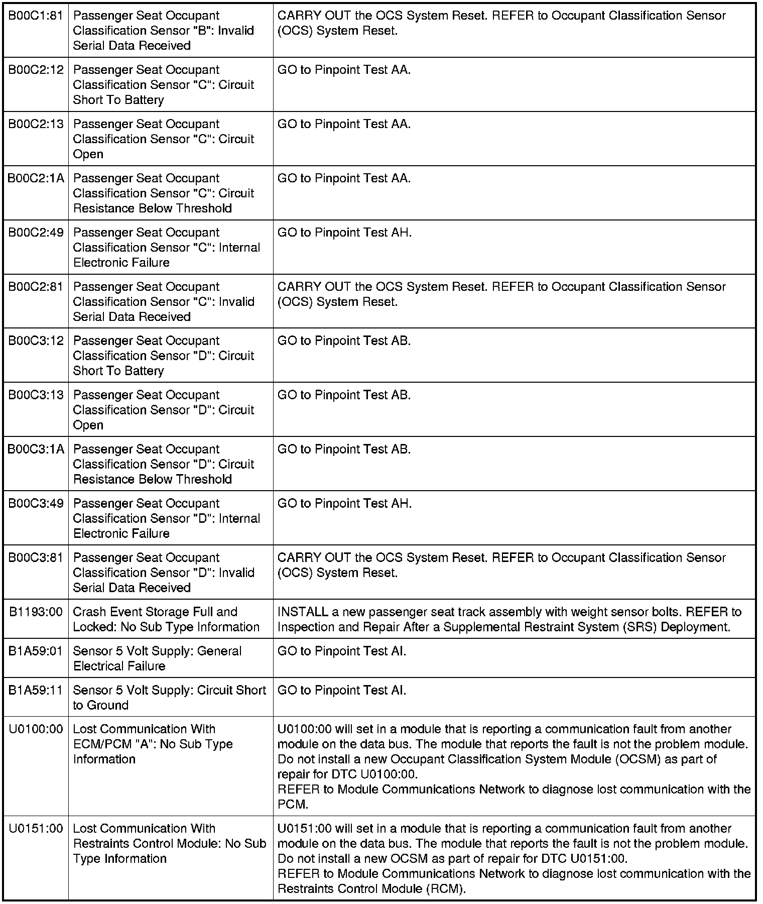 The DTCs can be retrieved from the RCM and the OCSM with a scan tool via the DLC.