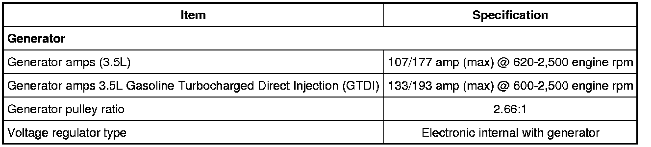 Home >> Ford >> 2011 >> Flex AWD V6-3.5L >> Repair and Diagnosis >> Specifications >> Electrical Specifications >> Charging System >> Alternator