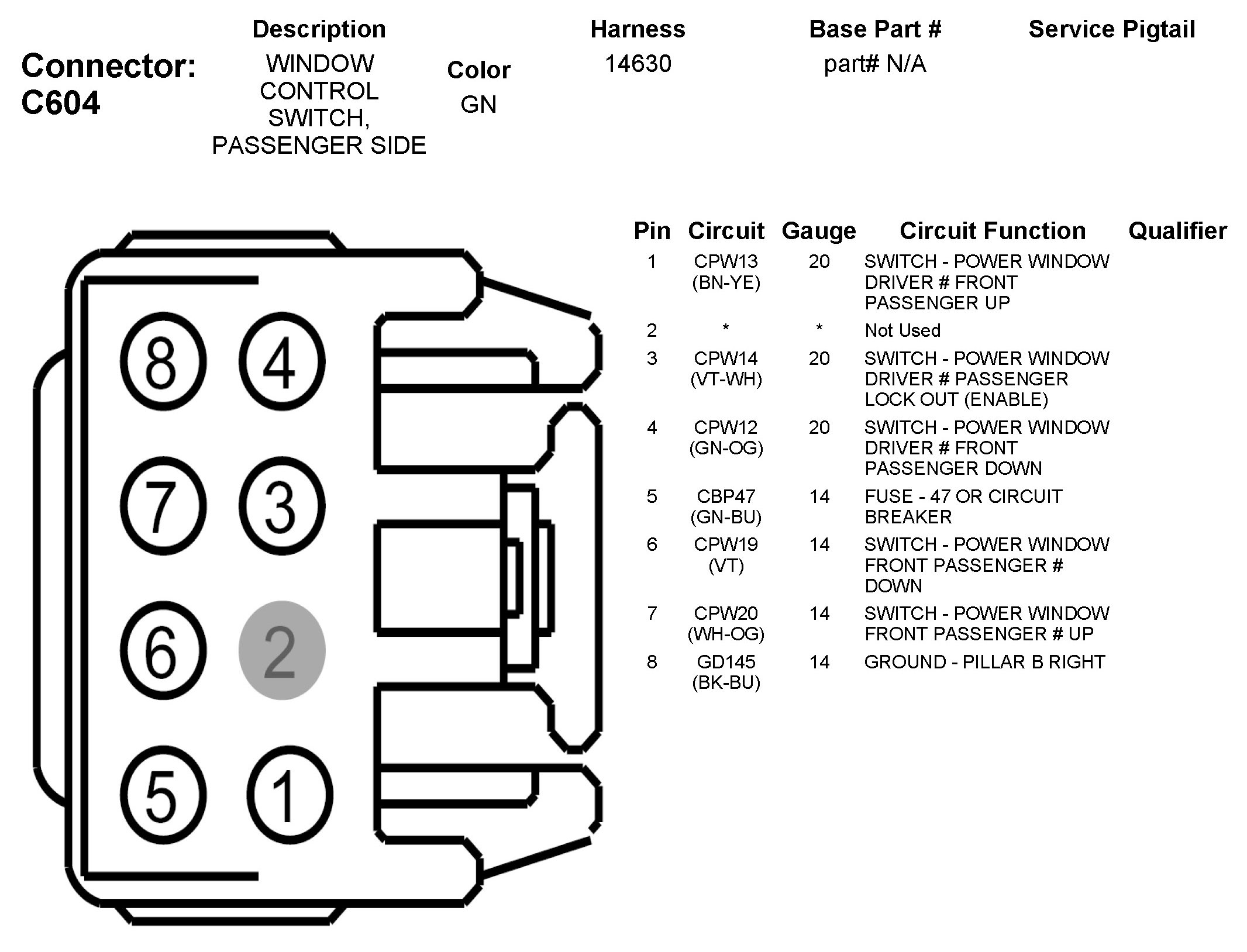 C604 Window Control Switch, Passenger Side