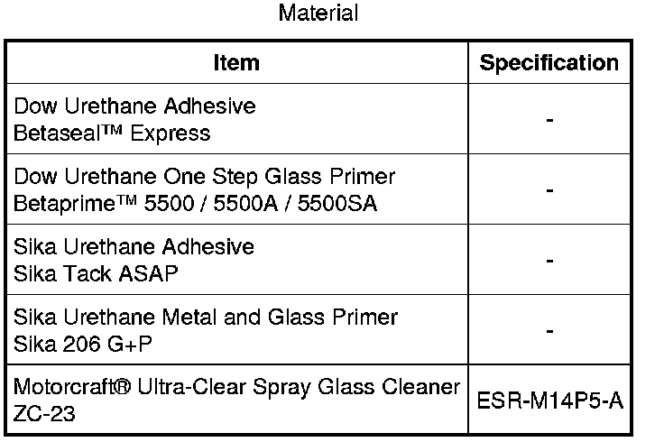 8. NOTE: Be sure to use the same brand and cure-rate products for the urethane adhesive and glass primer. Do not mix different brands of urethane adhesive and glass primer. For additional information, refer to the Material Chart in this procedure.