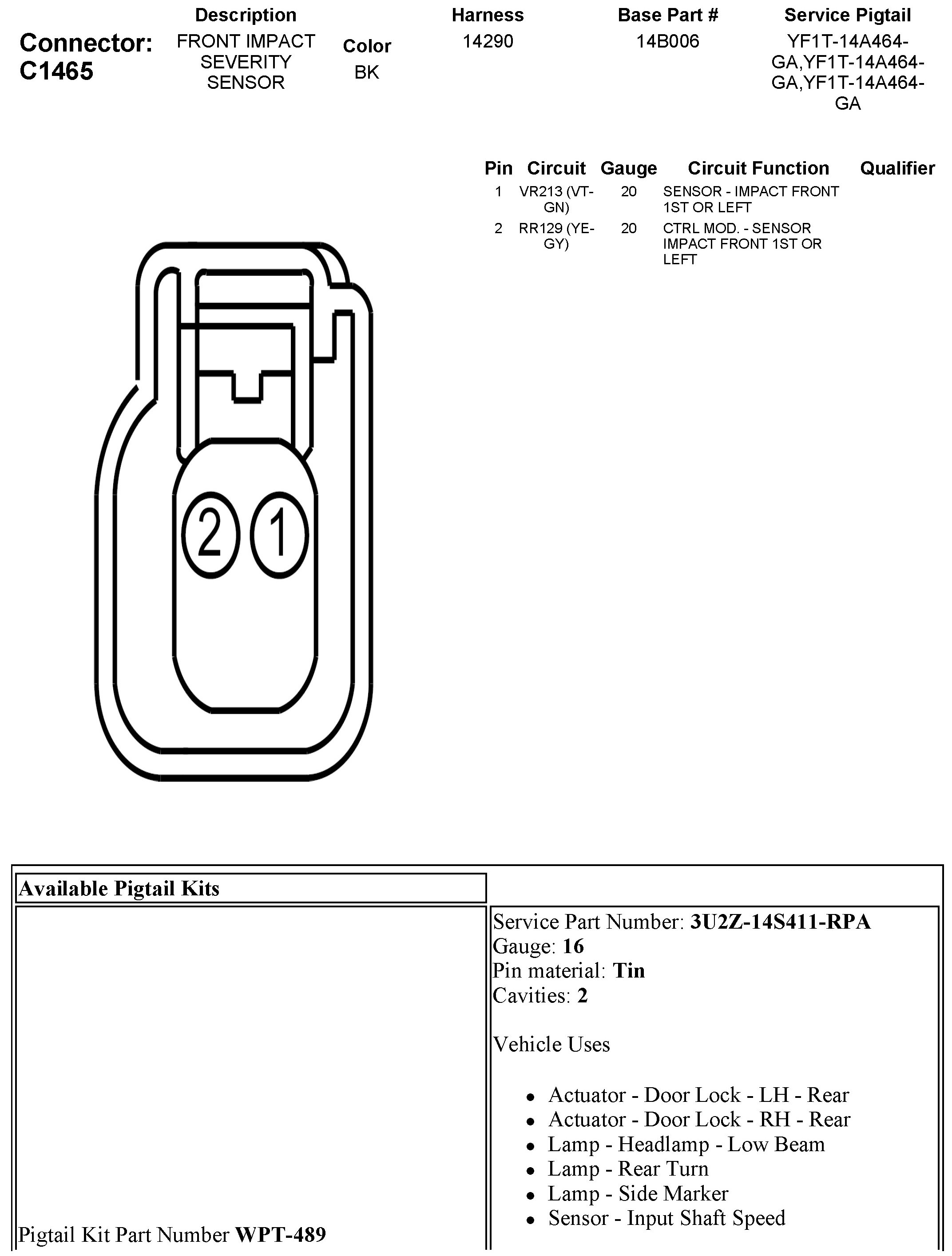 C1465 Front Impact Severity Sensor