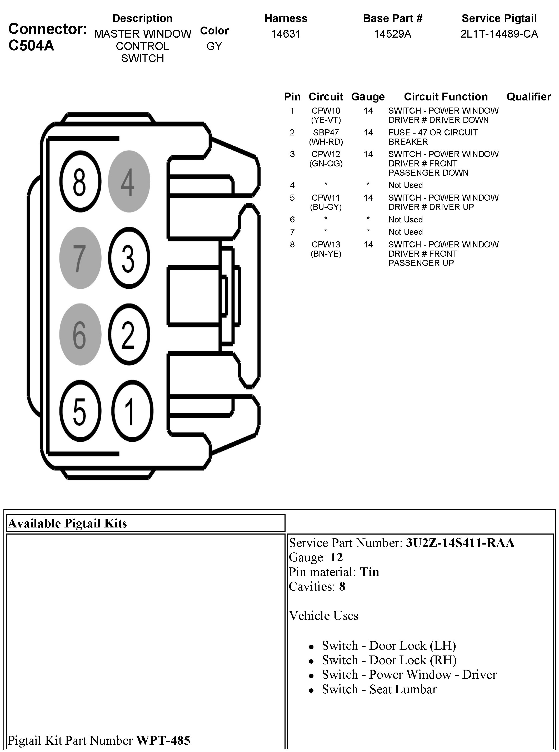C504A Master Window Control Switch