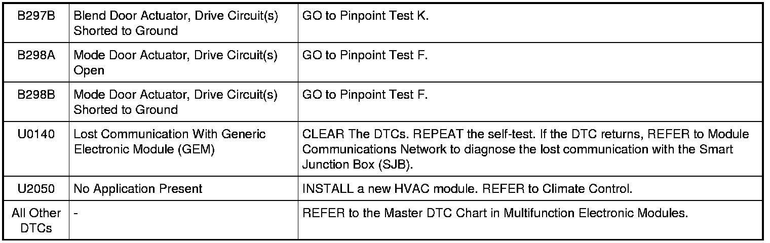 HVAC Module DTC Chart