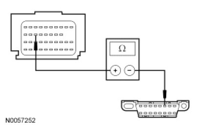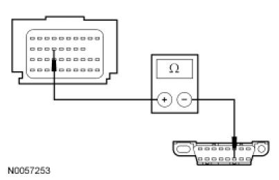 - Measure the resistance between the RCM C310b-18, circuit VDB04 (WH/BU), harness side and the Data Link Connector (DLC) C251-6, circuit VDB04 (WH/BU), harness side.