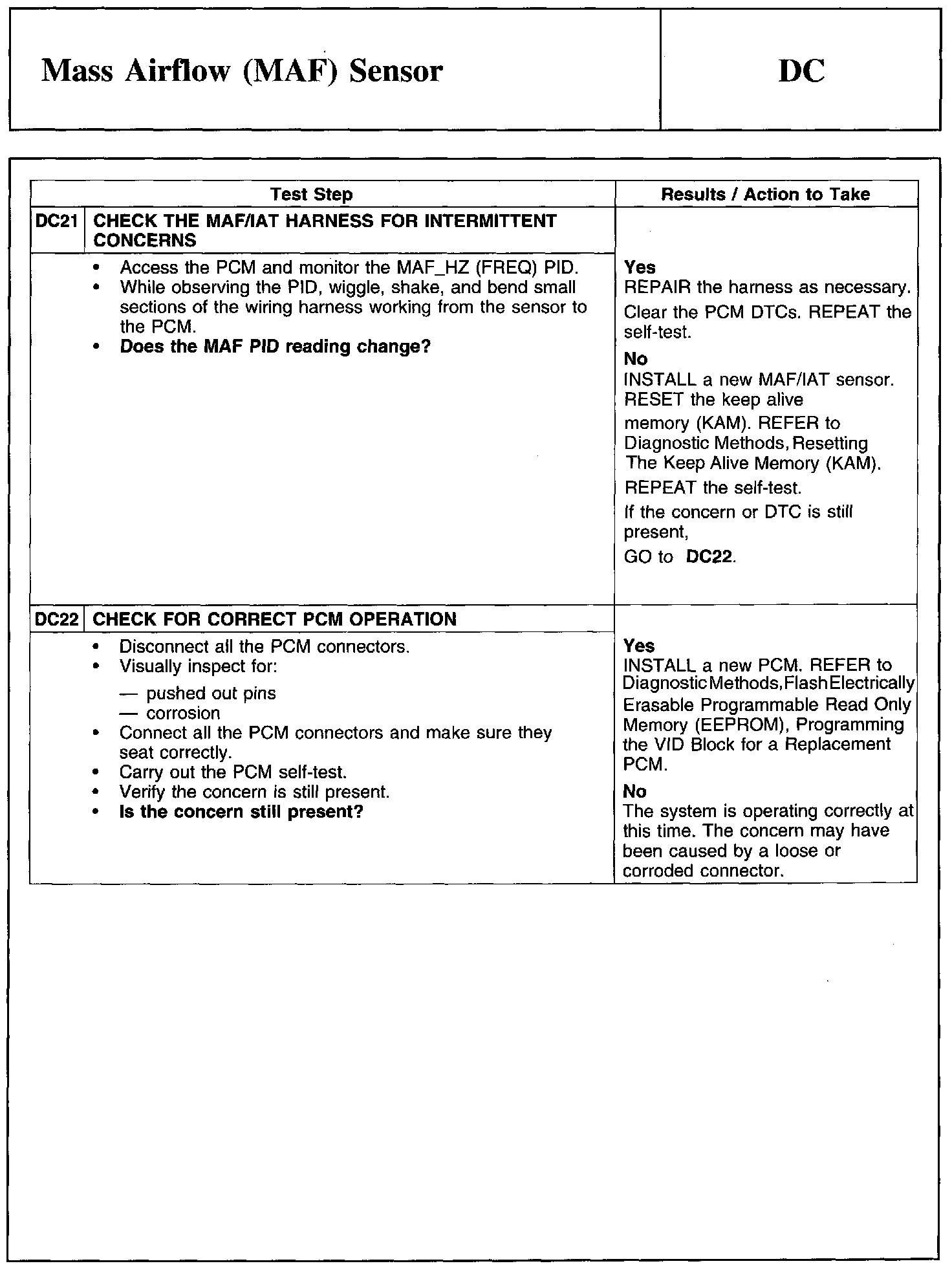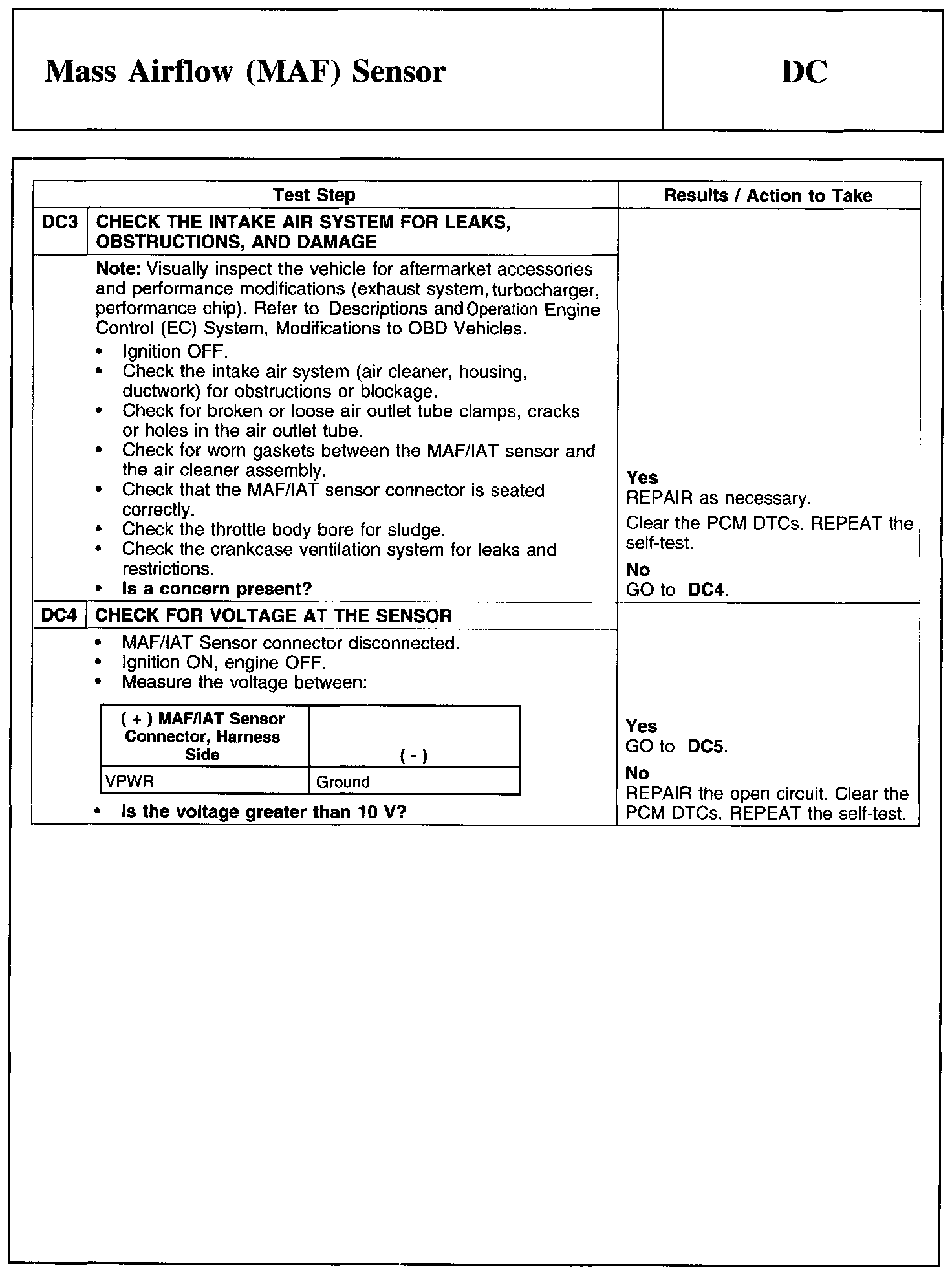 Test DC: Mass Airflow (MAF) Sensor