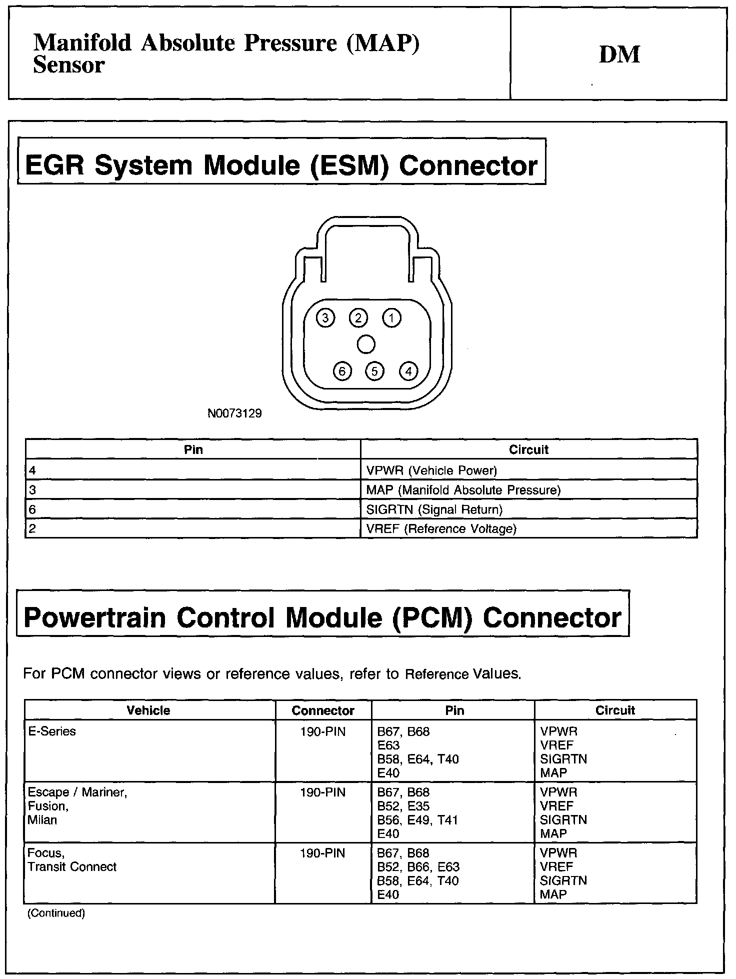 Test DM: Manifold Absolute Pressure (MAP) Sensor