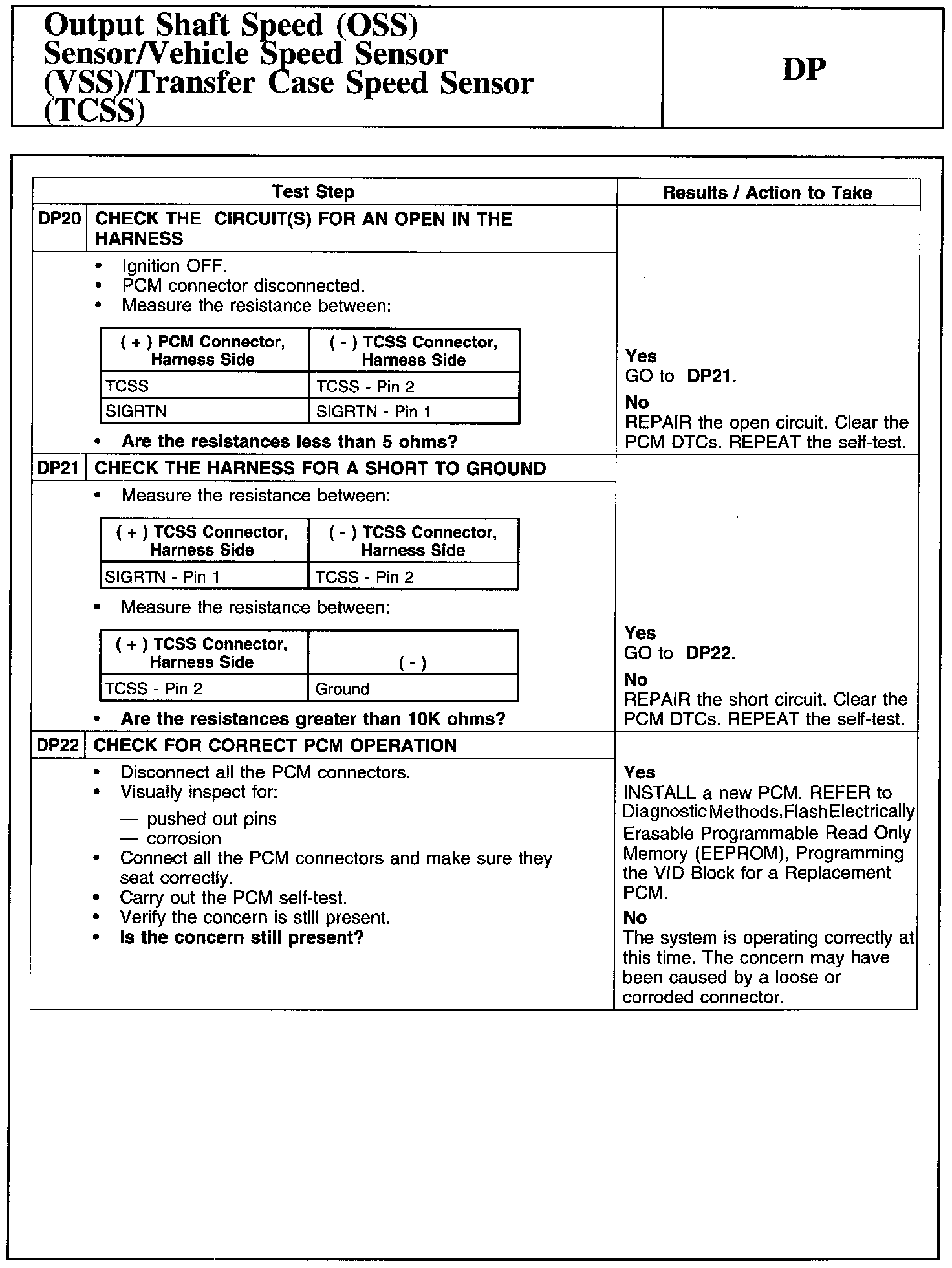 Test DP: Output Shaft Speed (OSS) Sensor/Vehicle Speed Sensor (VSS)/Transfer Case Speed Sensor (TCSS)