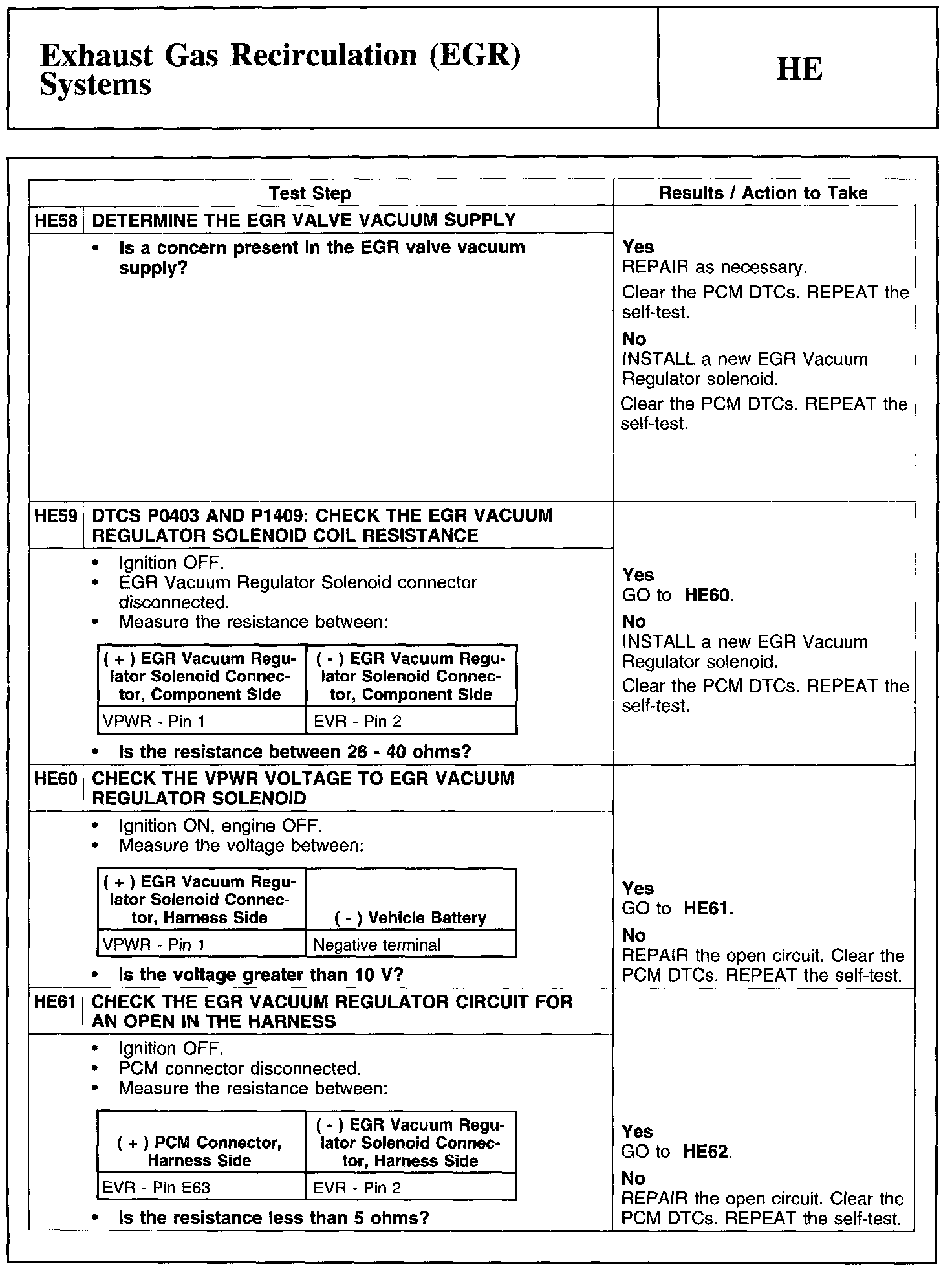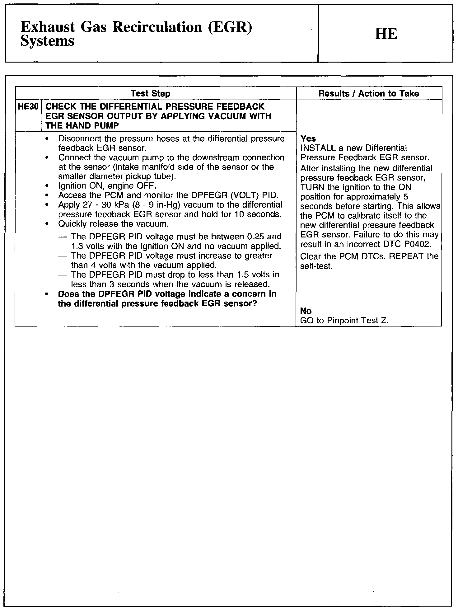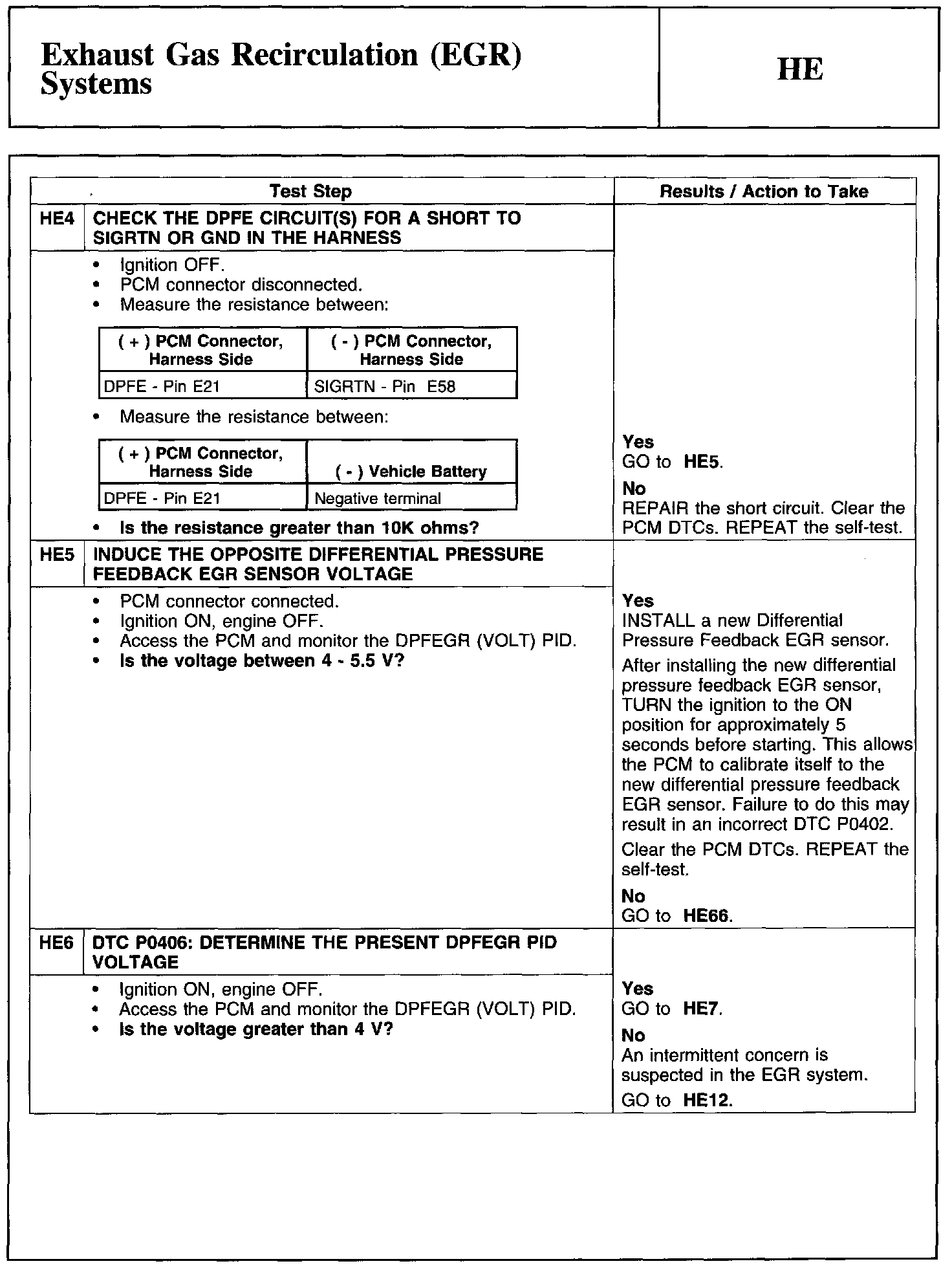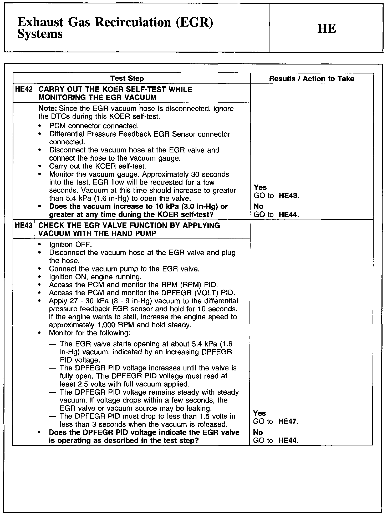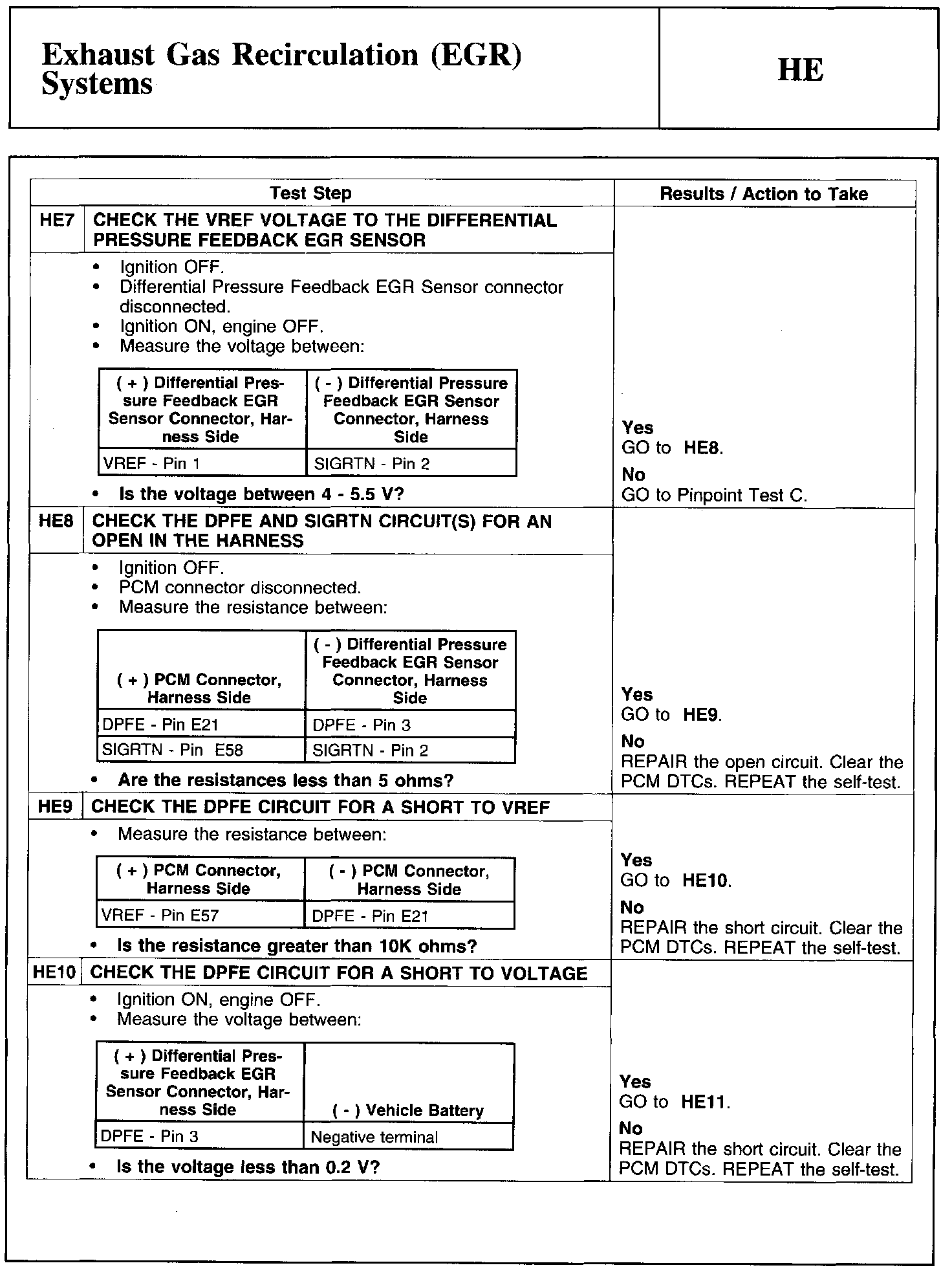 Home >> Ford >> 2011 >> Focus L4-2.0L >> Repair and Diagnosis >> Powertrain Management >> Computers and Control Systems >> Testing and Inspection >> Pinpoint Tests >> Test HE: Exhaust Gas Recirculation (EGR) Systems