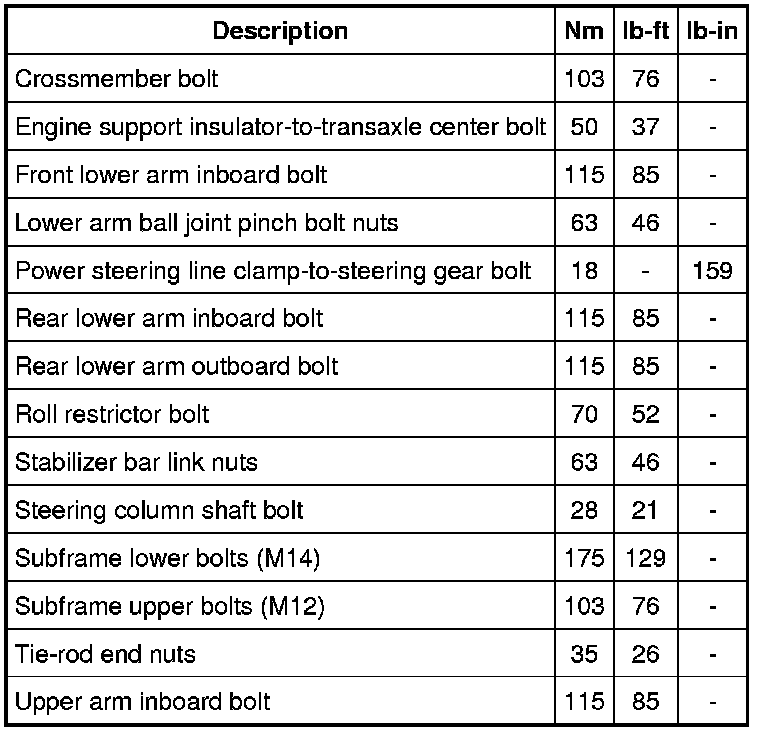 Torque Specifications