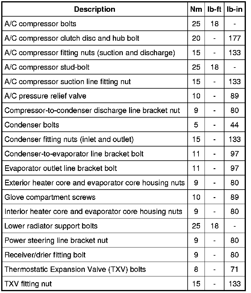 Torque Specifications
