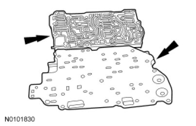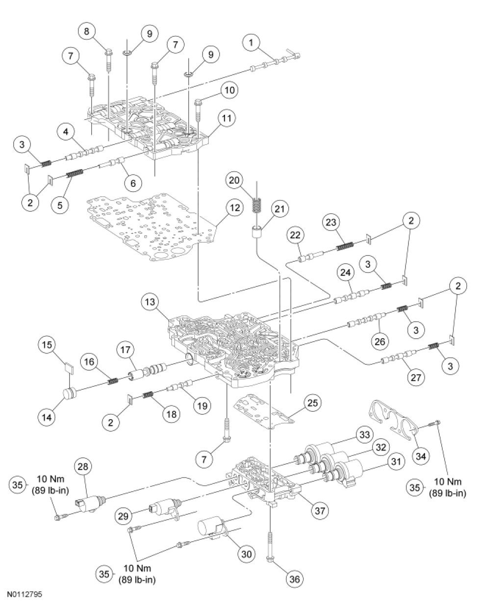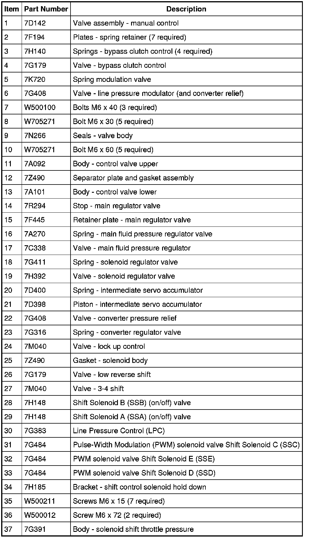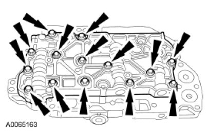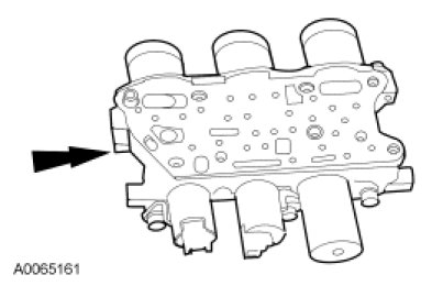 3. Remove the 4 bolts, remove the hold down bracket and remove Shift Solenoid A (SSA), Shift Solenoid B (SSB) and the Line Pressure Control (LPC) solenoid. Remove the 3 bolts and Shift Solenoid C (SSC),Shift Solenoid D (SSD) and Shift Solenoid E (SSE).
