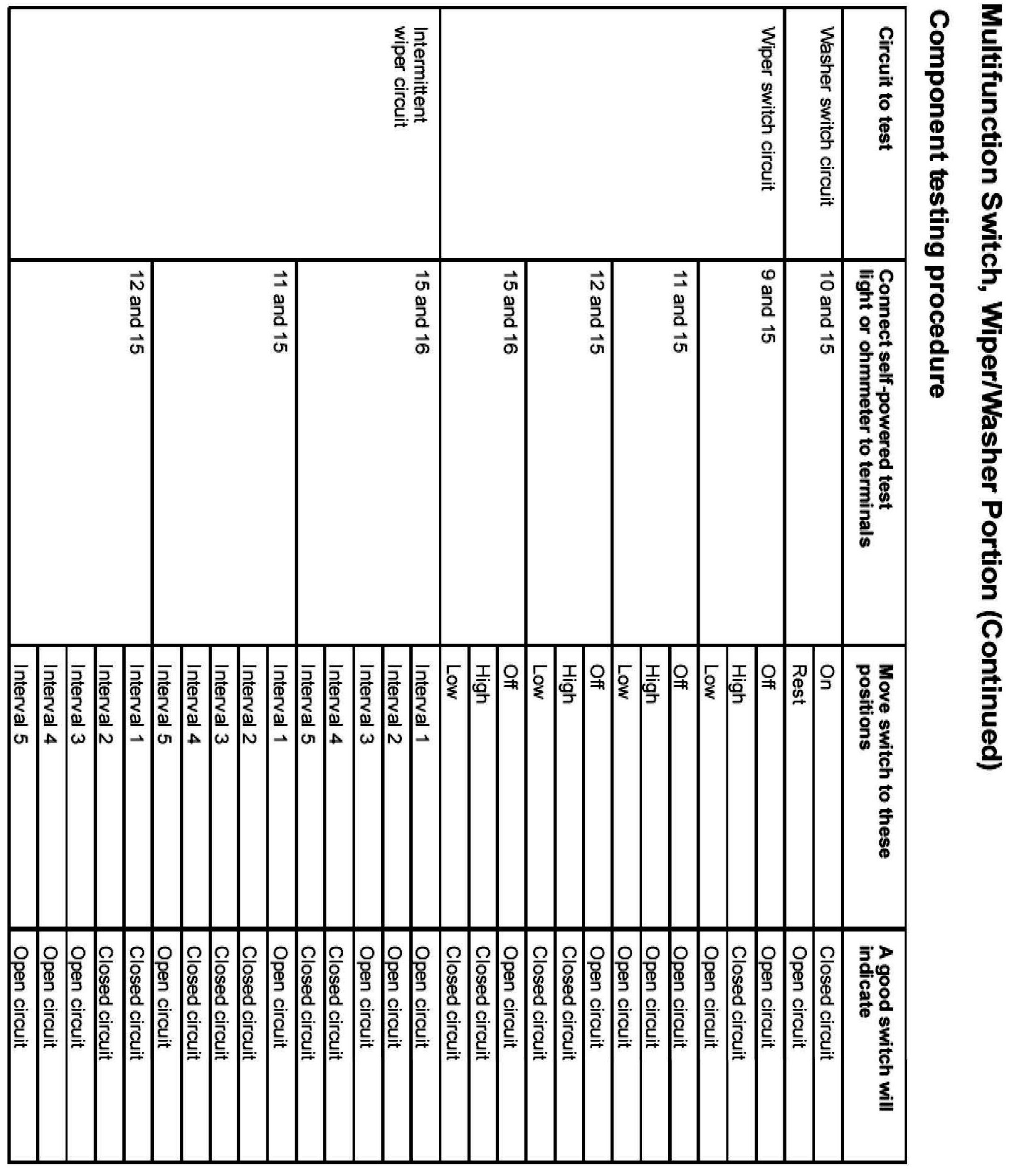 Wiper Switch: Testing and Inspection