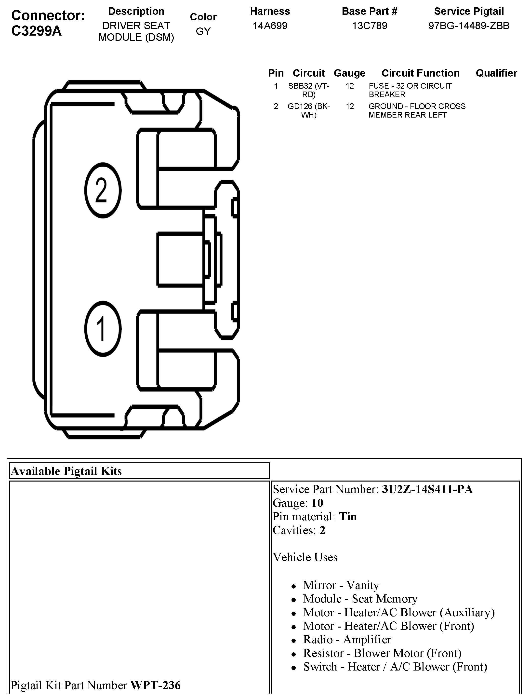 C3299A Driver Seat Module (DSM)