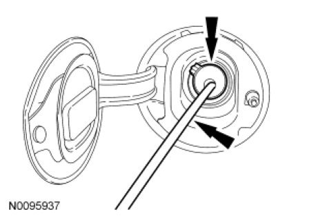 NOTE: The Easy Fuel(TM) (capless) fuel tank filler pipe on 3.0L vehicles have an anti-siphon grate that will not allow a fuel drain tube to penetrate the fuel tank and requires the following steps to drain the fuel.