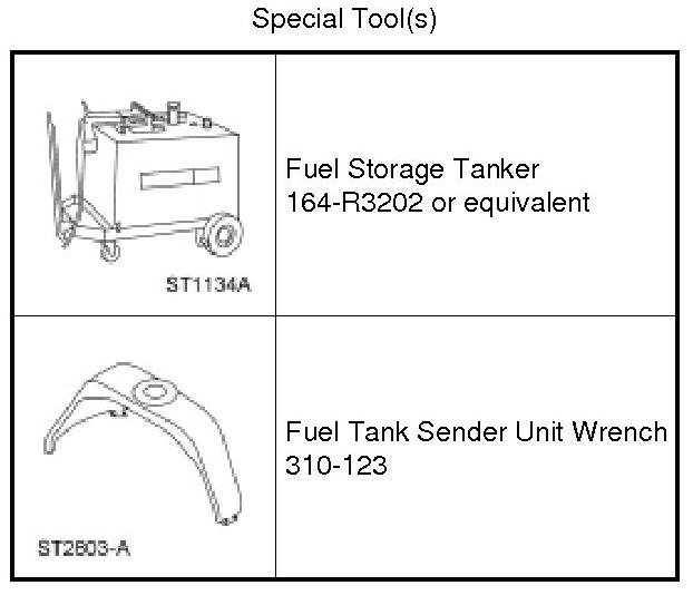 NOTE: Vehicles with an inaccurate or inoperable fuel gauge, follow the instructions for draining a fuel tank with more than one-half of a tank of fuel.