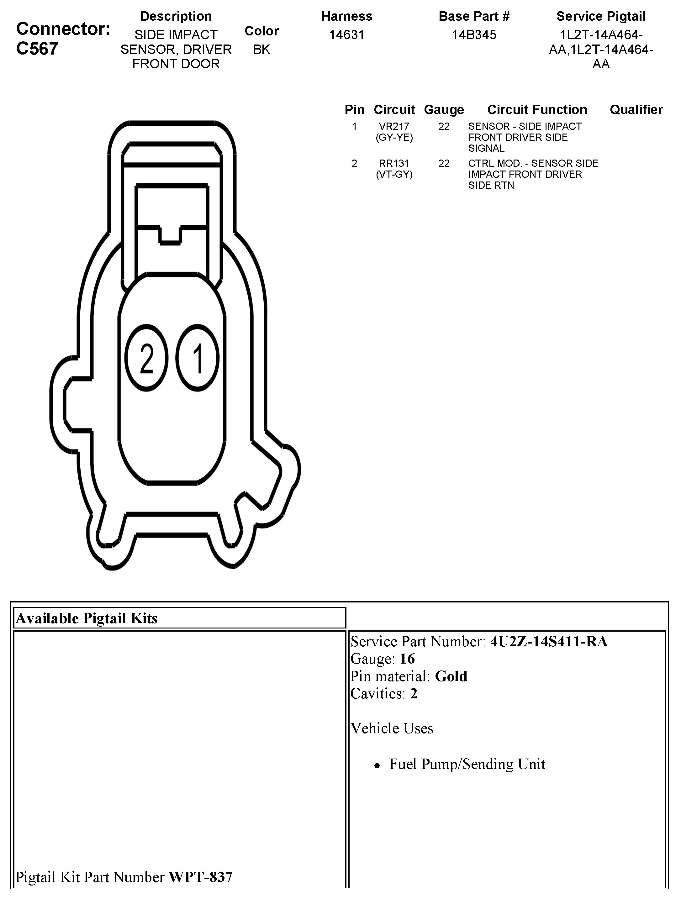 C567 Side Impact Sensor, Driver Front Door