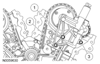 24. NOTICE: Make sure the dowels on the Variable Camshaft Timing (VCT) housing are fully engaged in the cylinder head prior to tightening the bolts. Failure to follow this process will result in severe engine damage.