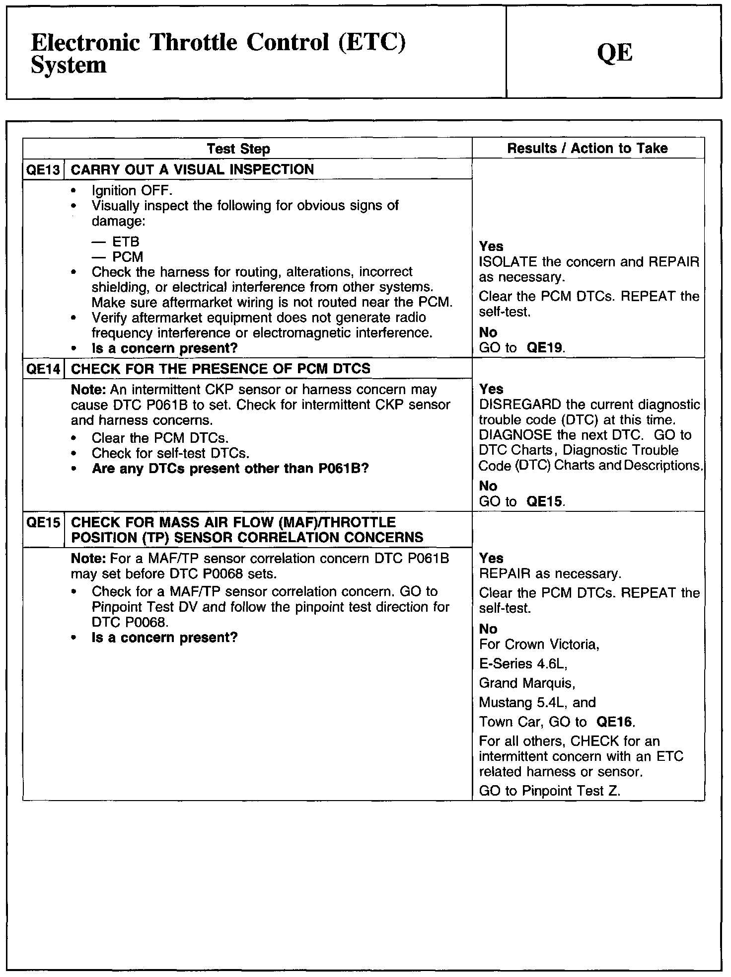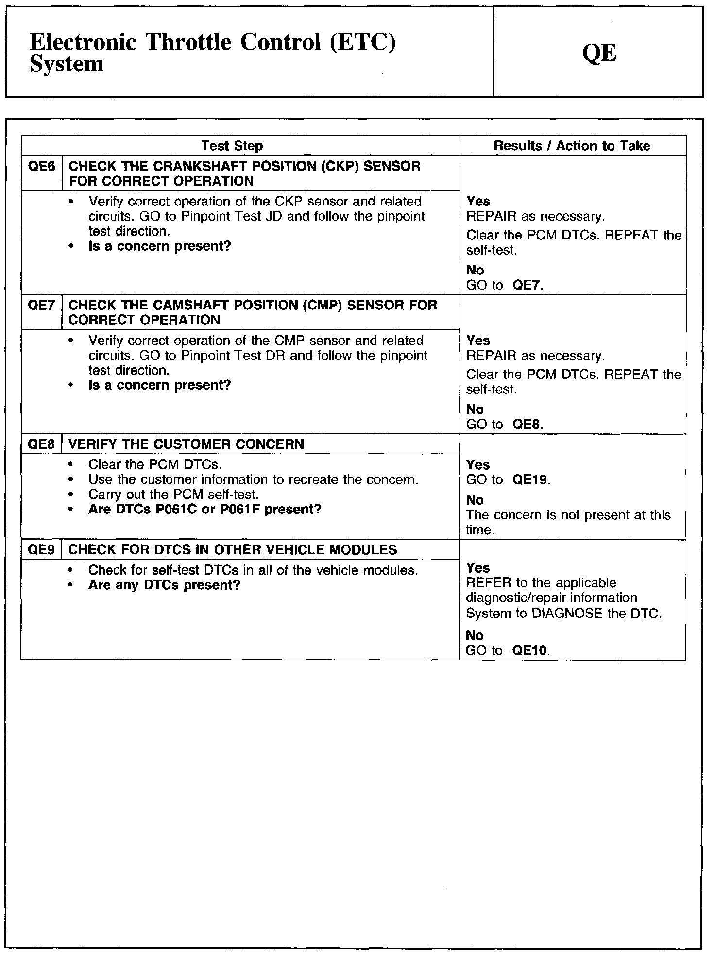 PINPOINT TEST QE: ELECTRONIC THROTTLE CONTROL (ETC) SYSTEMNote: