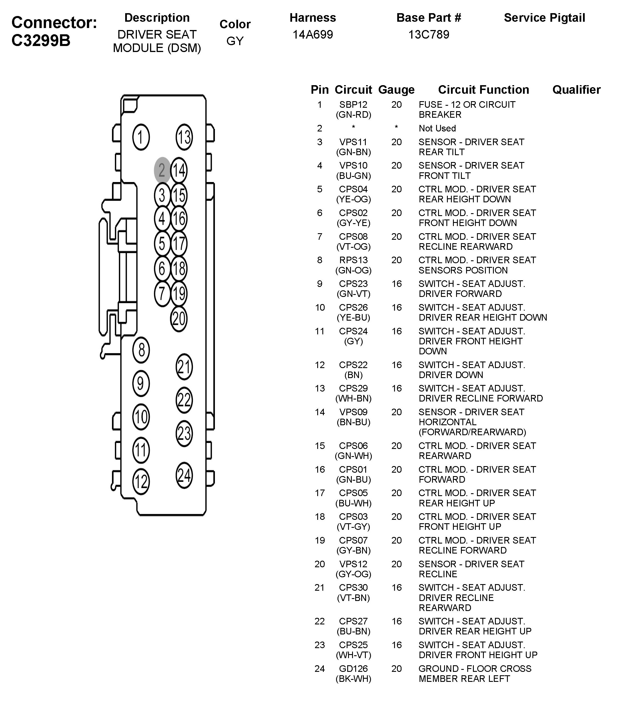 C3299B Driver Seat Module (DSM)