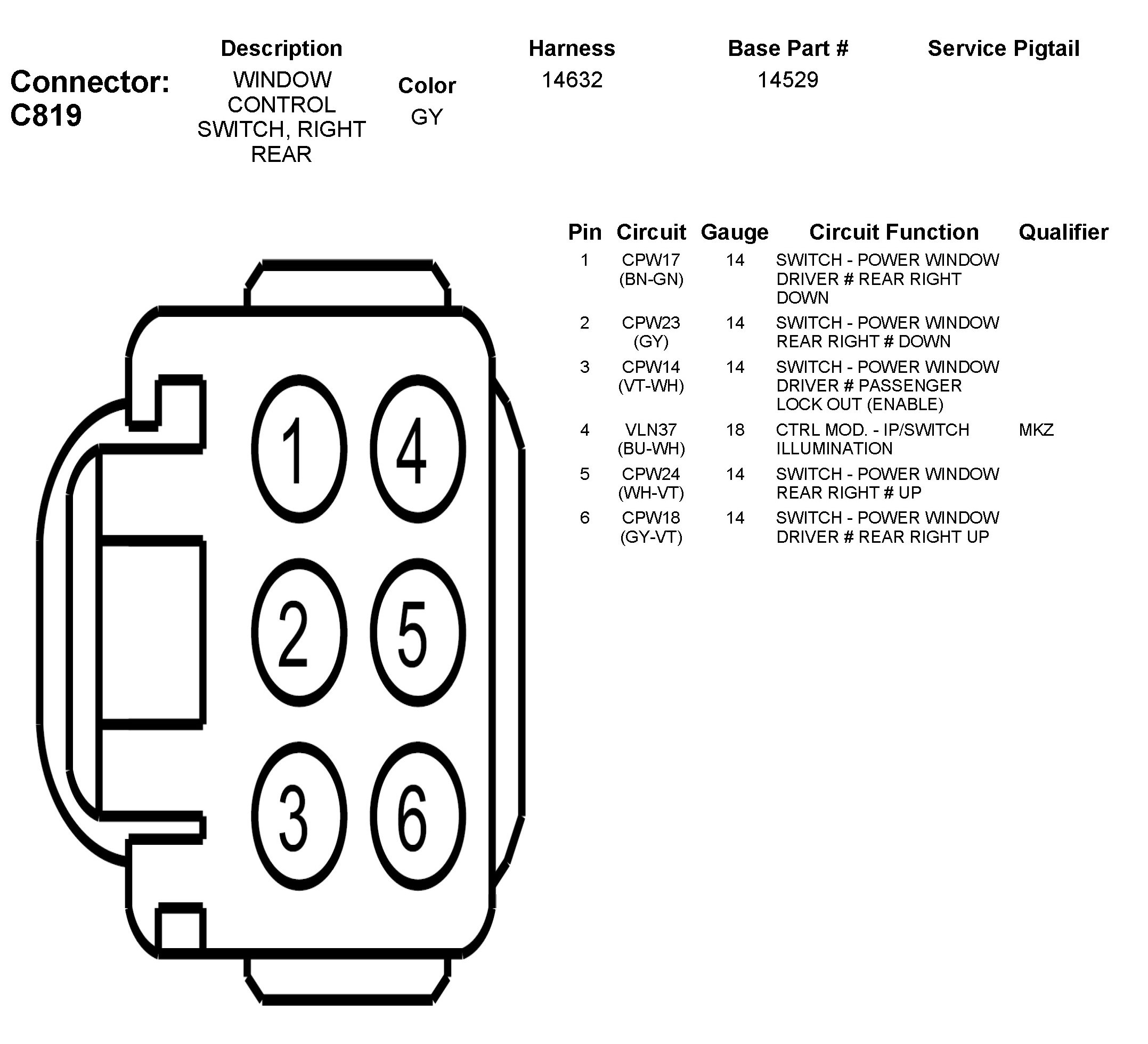 C819 Window Control Switch, Right Rear