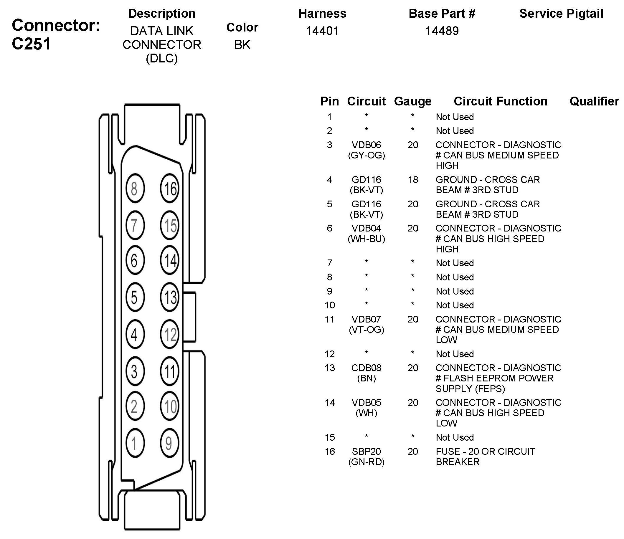Data Link Connector: Diagrams