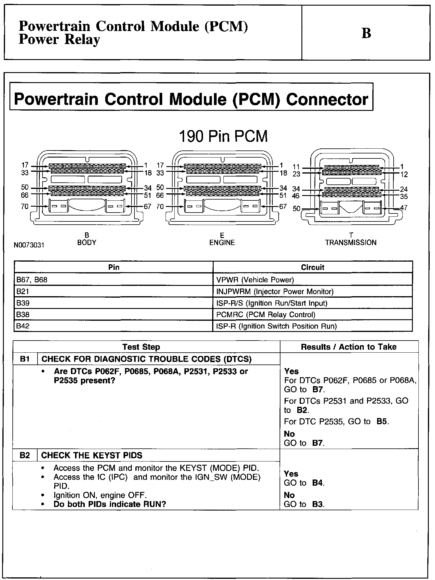 PINPOINT TEST B: POWERTRAIN CONTROL MODULE (PCM) POWER RELAY