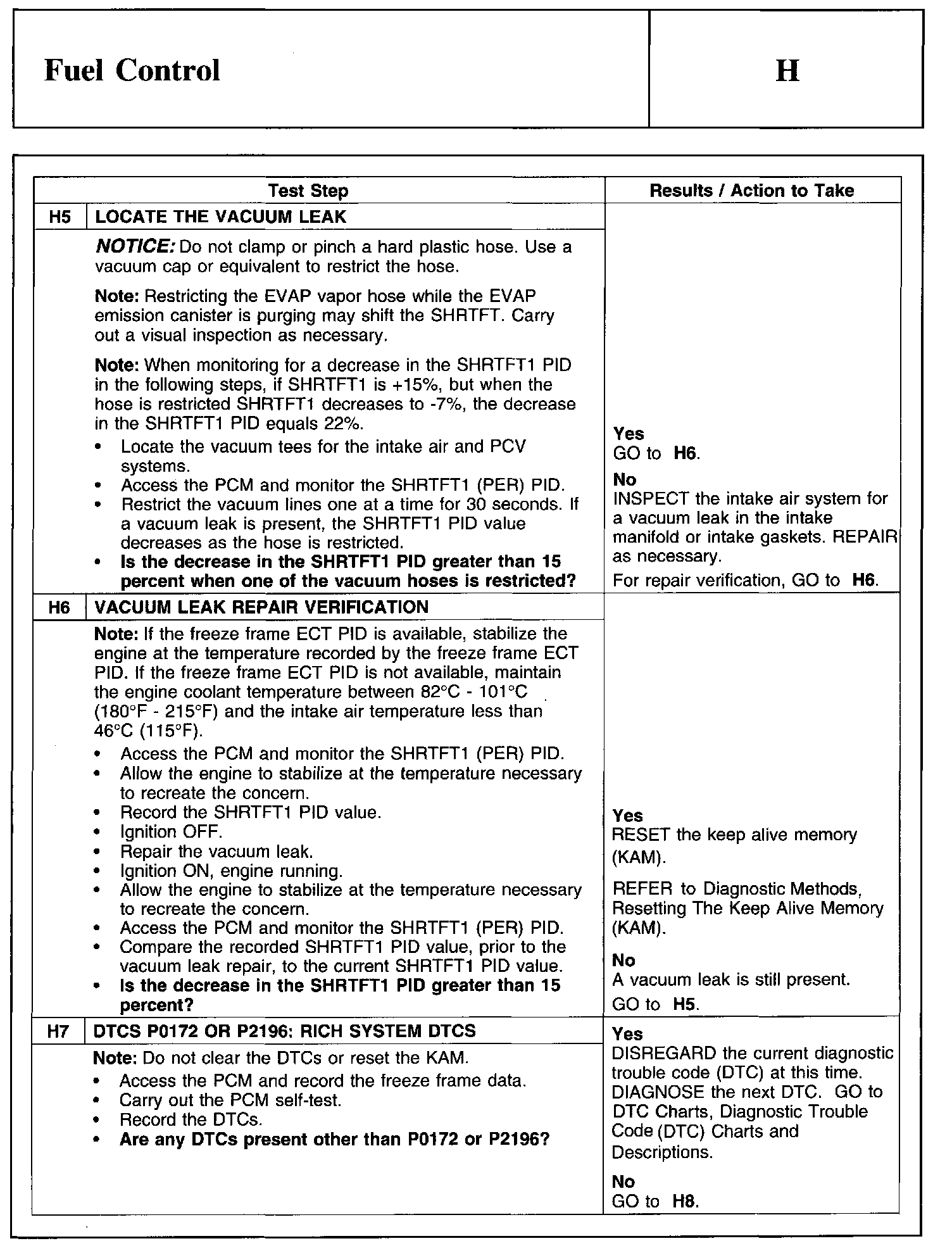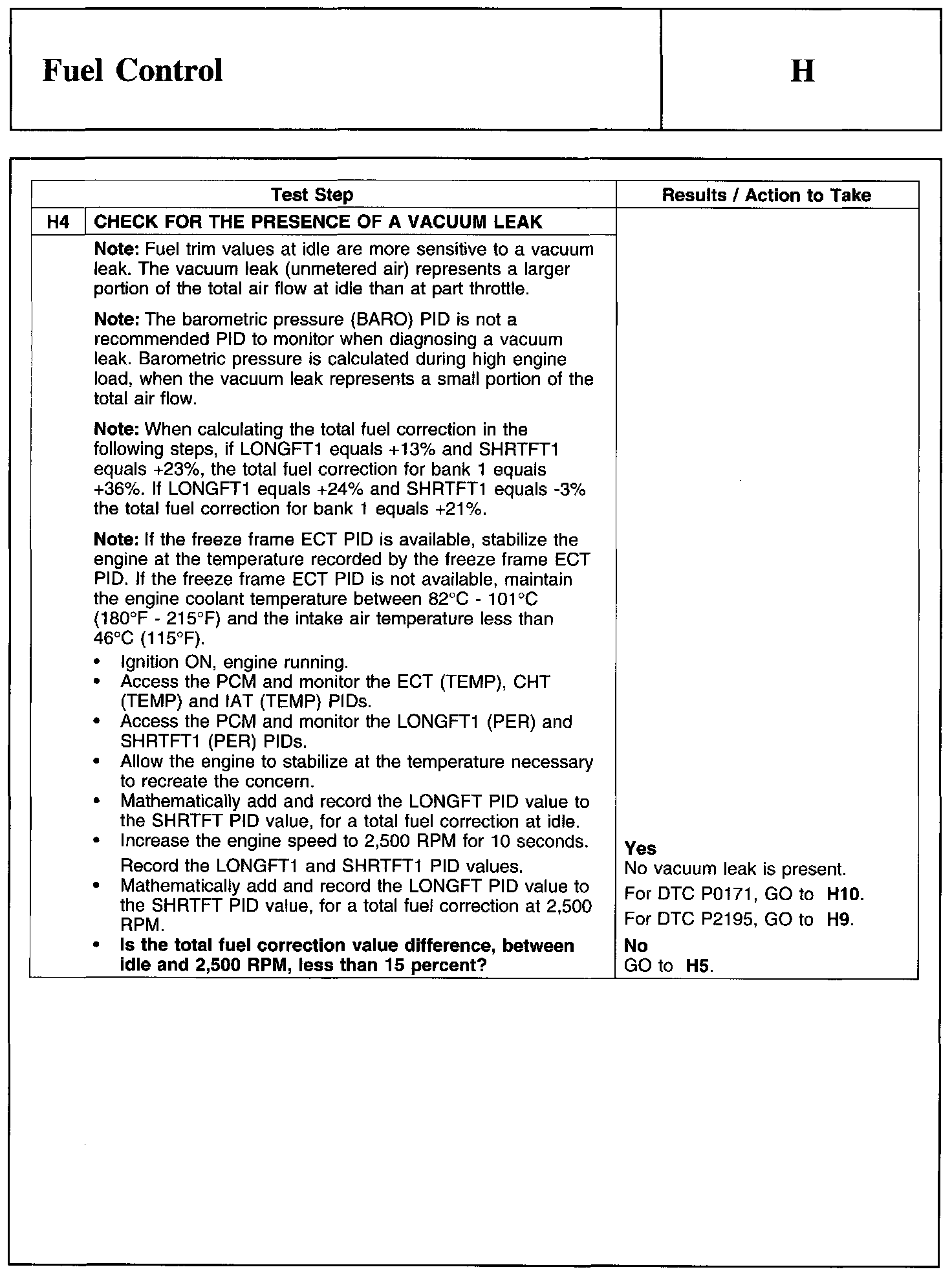 Test H: Fuel Control