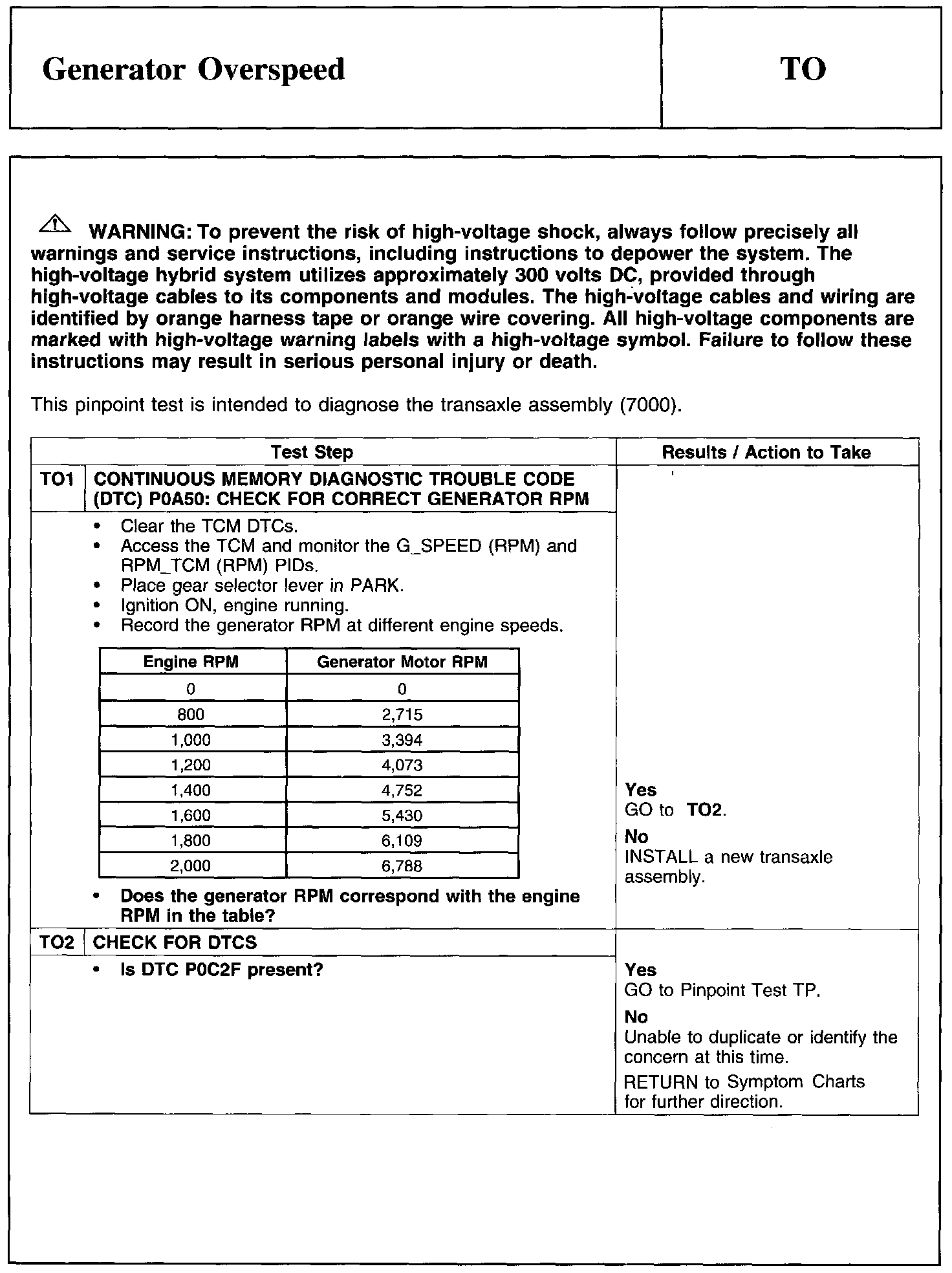 PINPOINT TEST TO: GENERATOR OVERSPEED