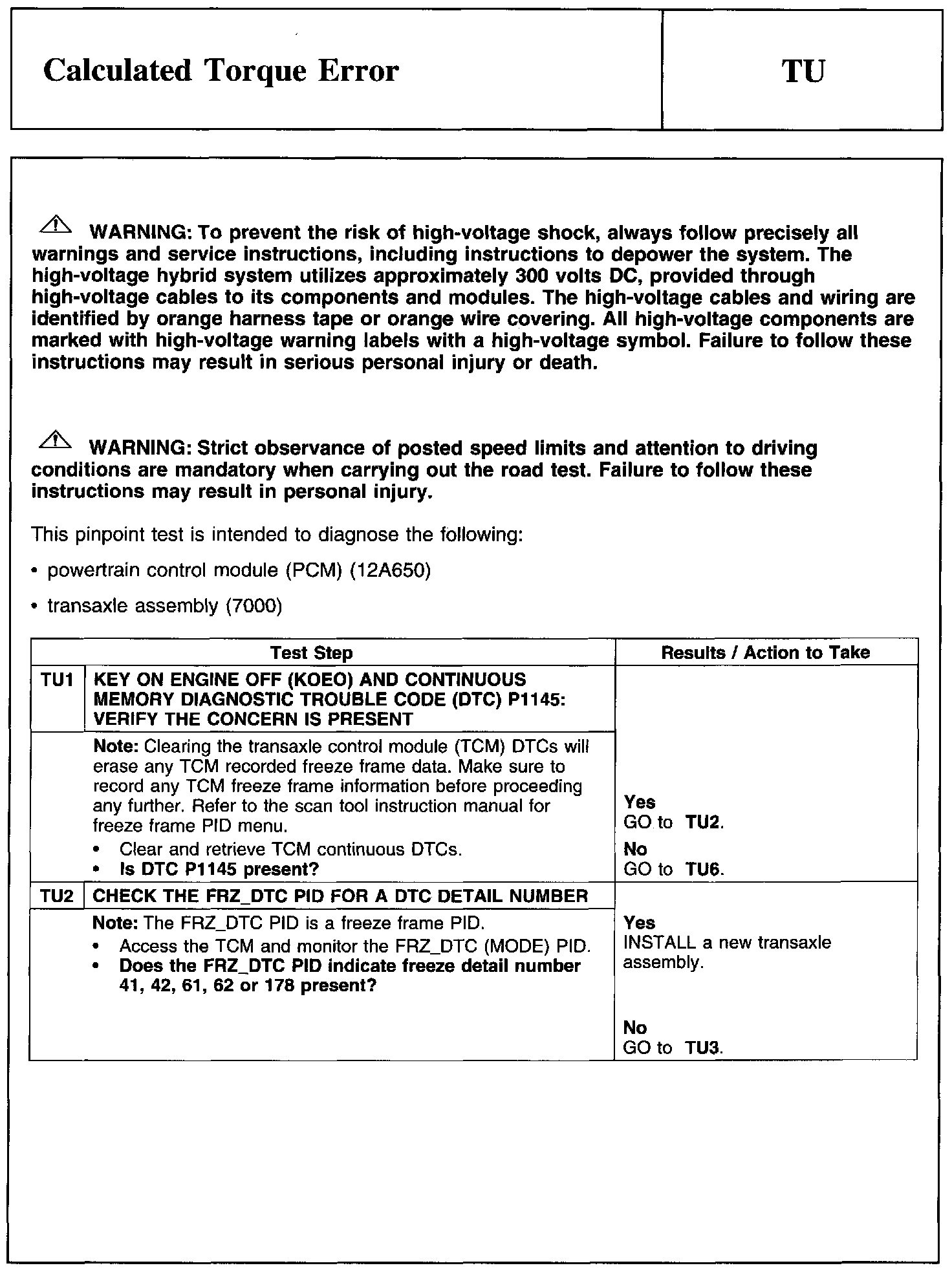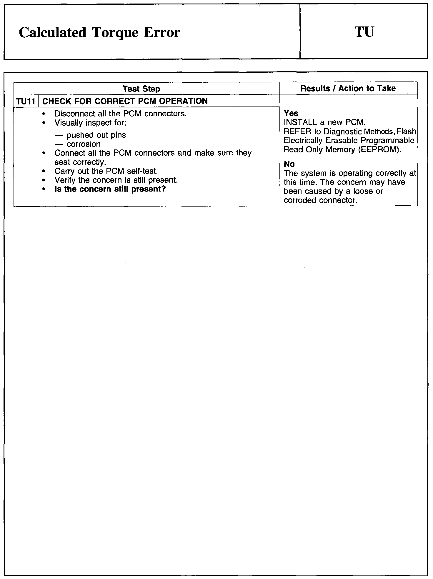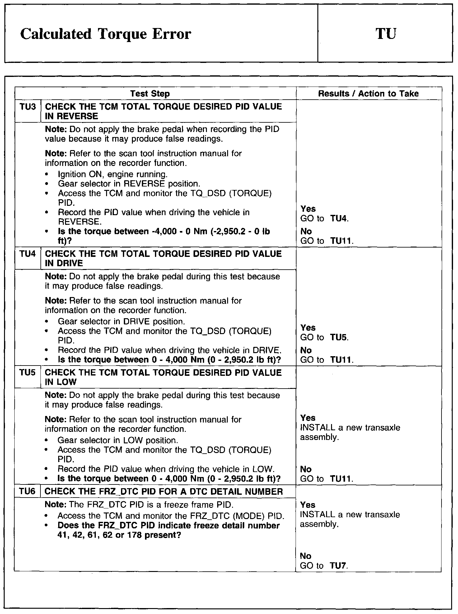 Test TU: Calculated Torque Error