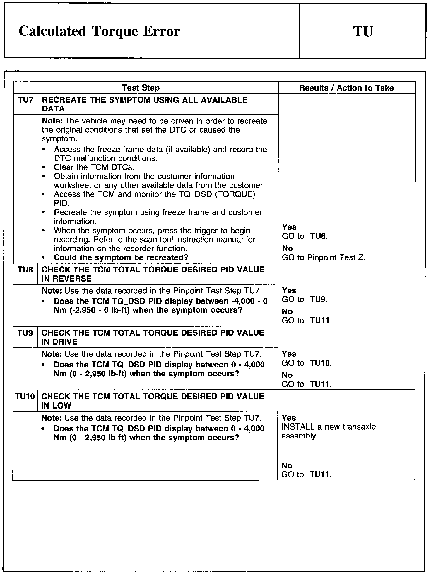 PINPOINT TEST TU: CALCULATED TORQUE ERROR