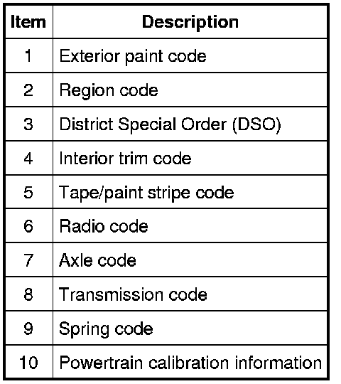 Powertrain calibration information is printed in the lower right corner of the VC label. Only base calibration information is printed. Revision levels will not appear, however, they can be obtained through a scan tool using the most current software revision.