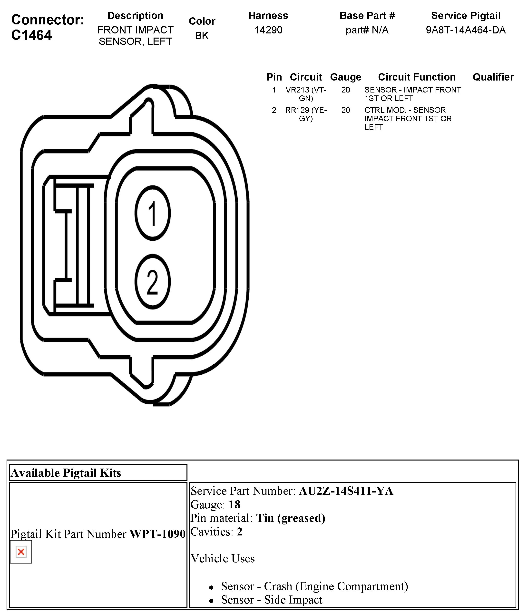 C1464 Front Impact Sensor, Left