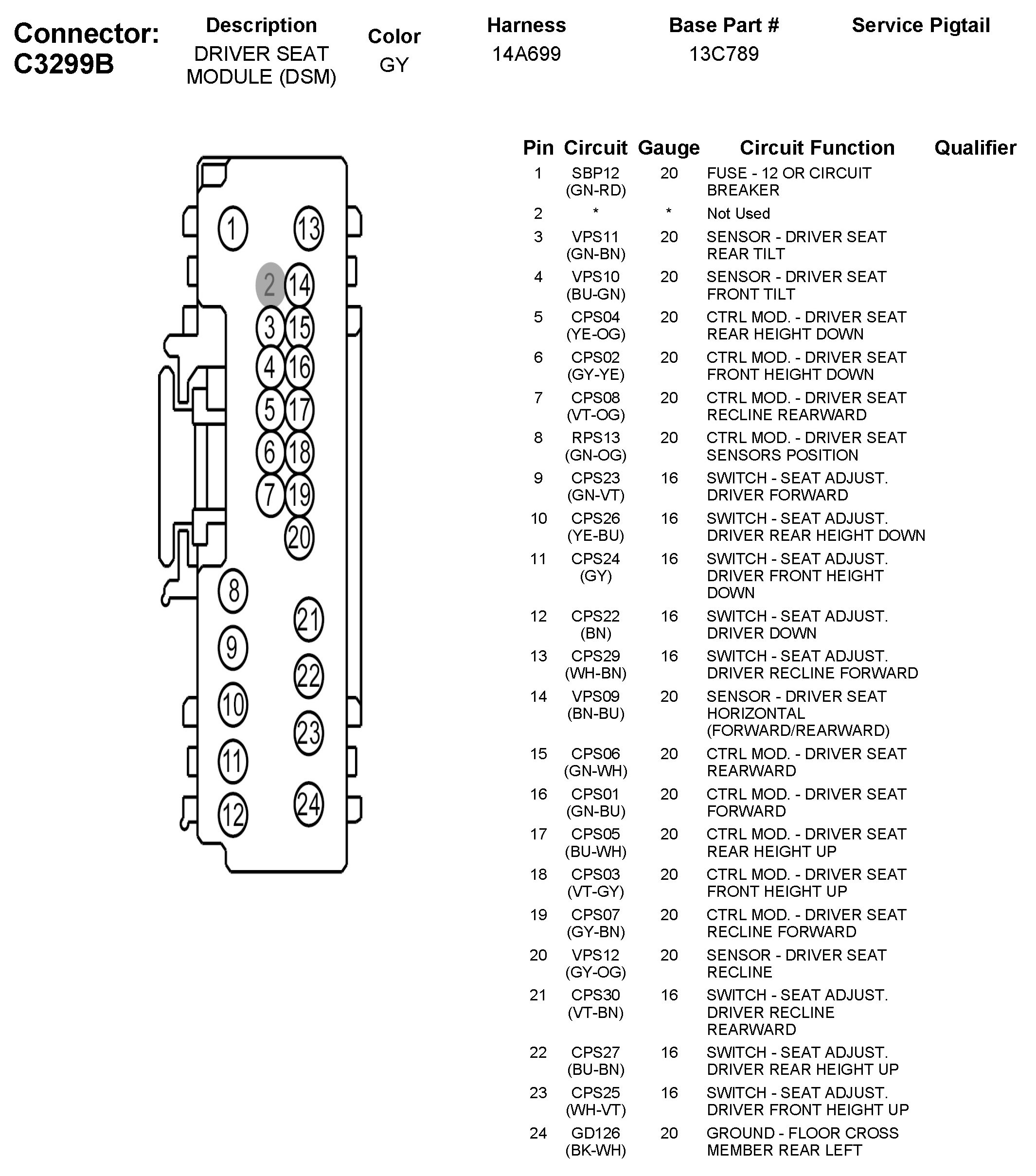 C3299B Driver Seat Module (DSM)