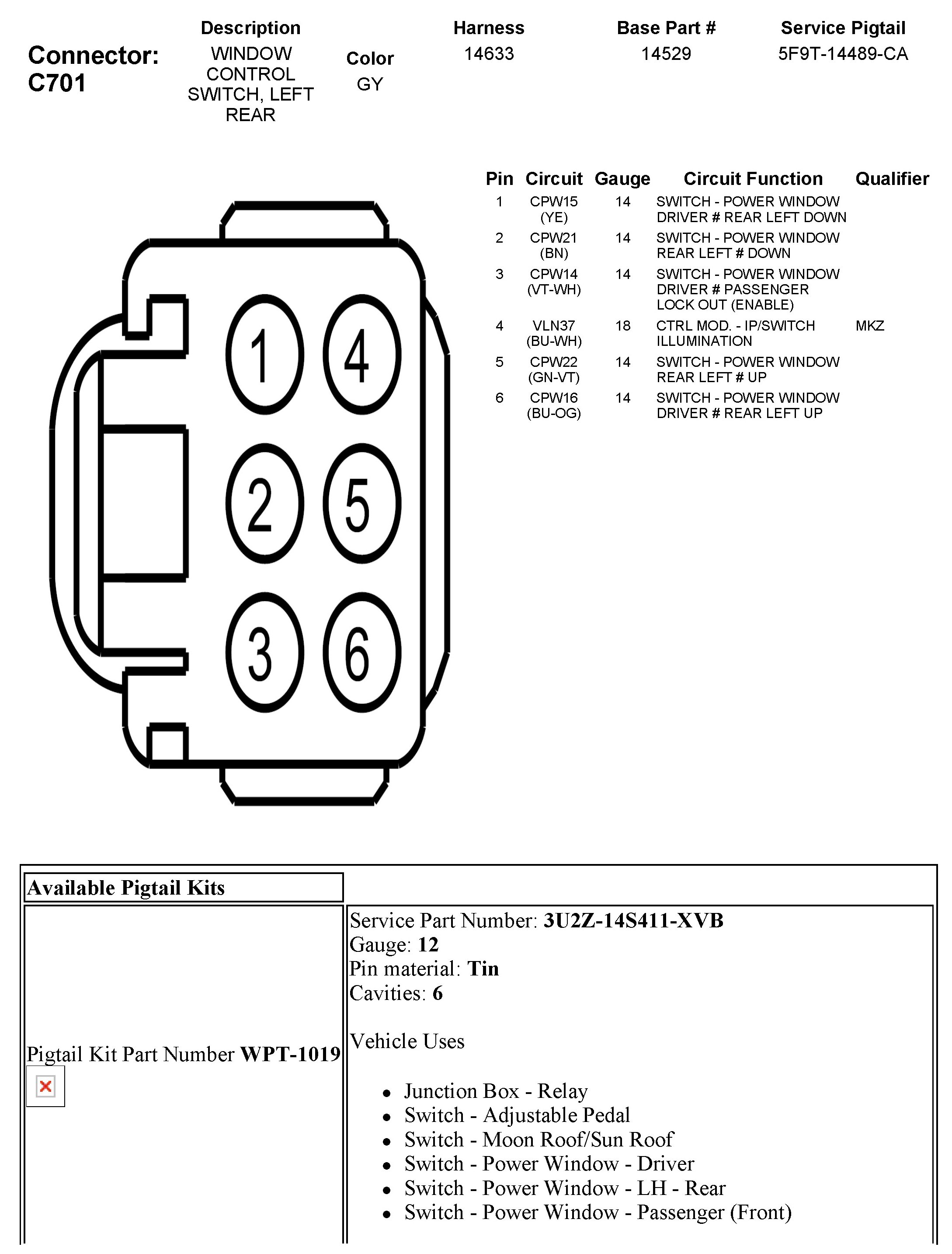 C701 Window Control Switch, Left Rear