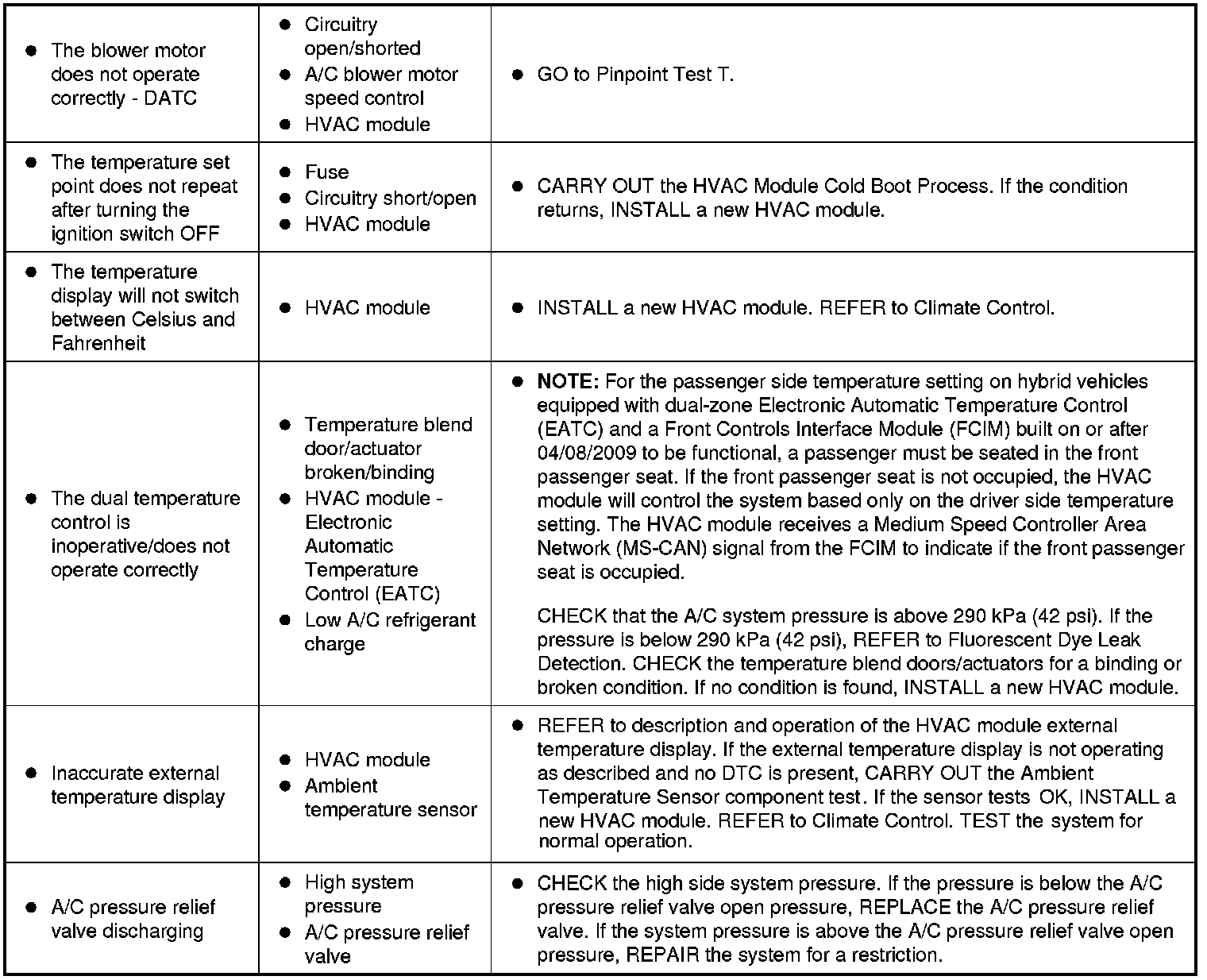 Symptom Chart - Climate Control Systems