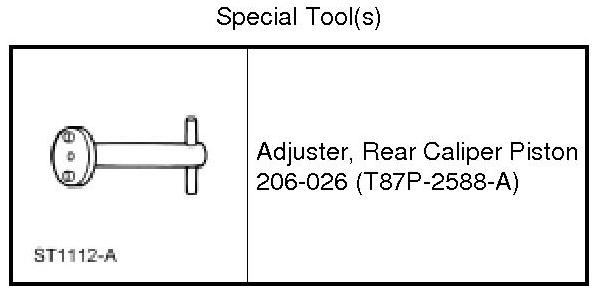9. Using the Rear Caliper Piston Adjuster, fully retract the brake caliper piston and tighten the bleeder screw to specifications, refer to Specifications.