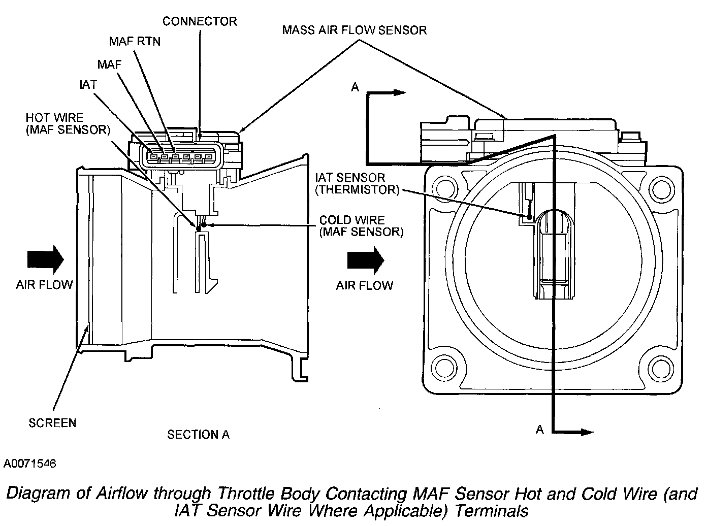 Currently there are 2 types of IAT sensors used, a stand alone and an integrated type. Both types function the same, however the integrated type is incorporated into the mass airflow (MAF) sensor instead of being a stand alone sensor.