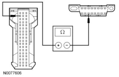 - Measure the resistance between the APIM C3338-16, circuit VDB06 (GY/OG), harness side and the DLC C251-3, circuit VDB06 (GY/OG), harness side.