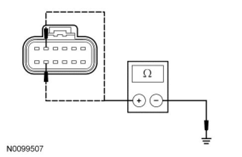 - For 3.5L gasoline, measure the resistance between the TCM C1533-9, circuit GD120 (BK/GN), harness side and ground.