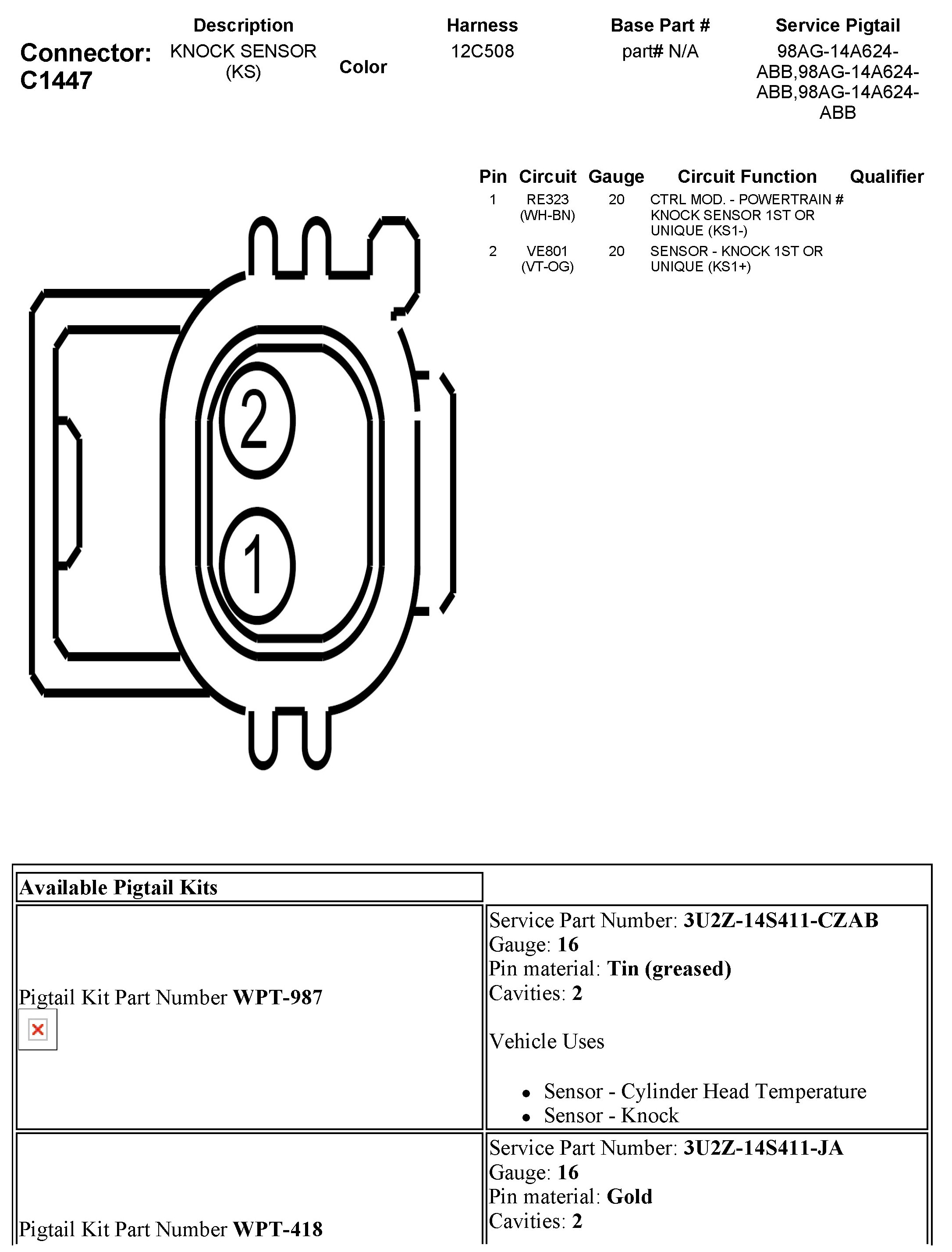 C1447 Knock Sensor (KS)