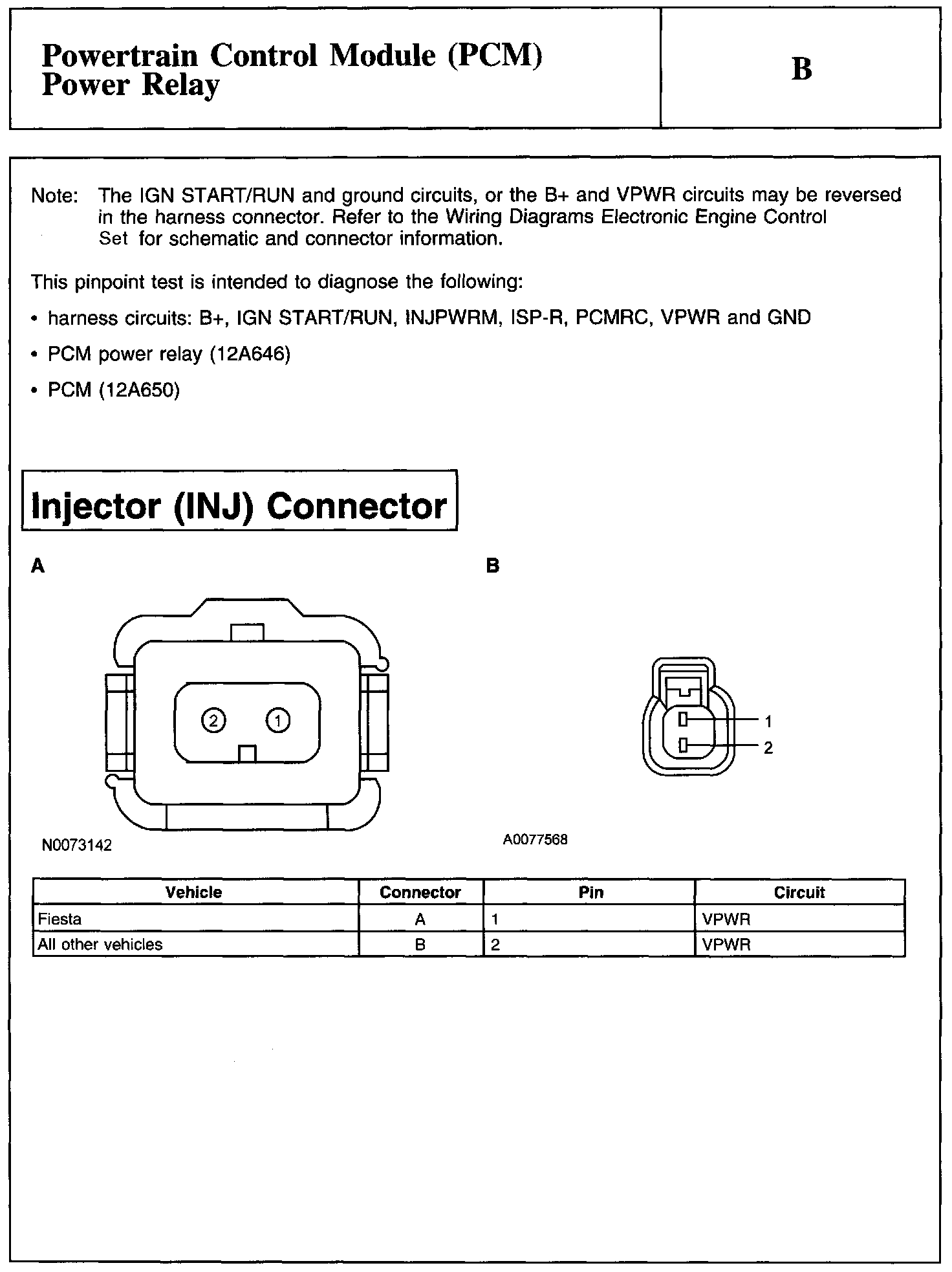 Home >> Ford >> 2011 >> Fusion FWD L4-2.5L >> Repair and Diagnosis >> Powertrain Management >> Computers and Control Systems >> Testing and Inspection >> Pinpoint Tests >> Test B: Powertrain Control Module (PCM) Power Relay