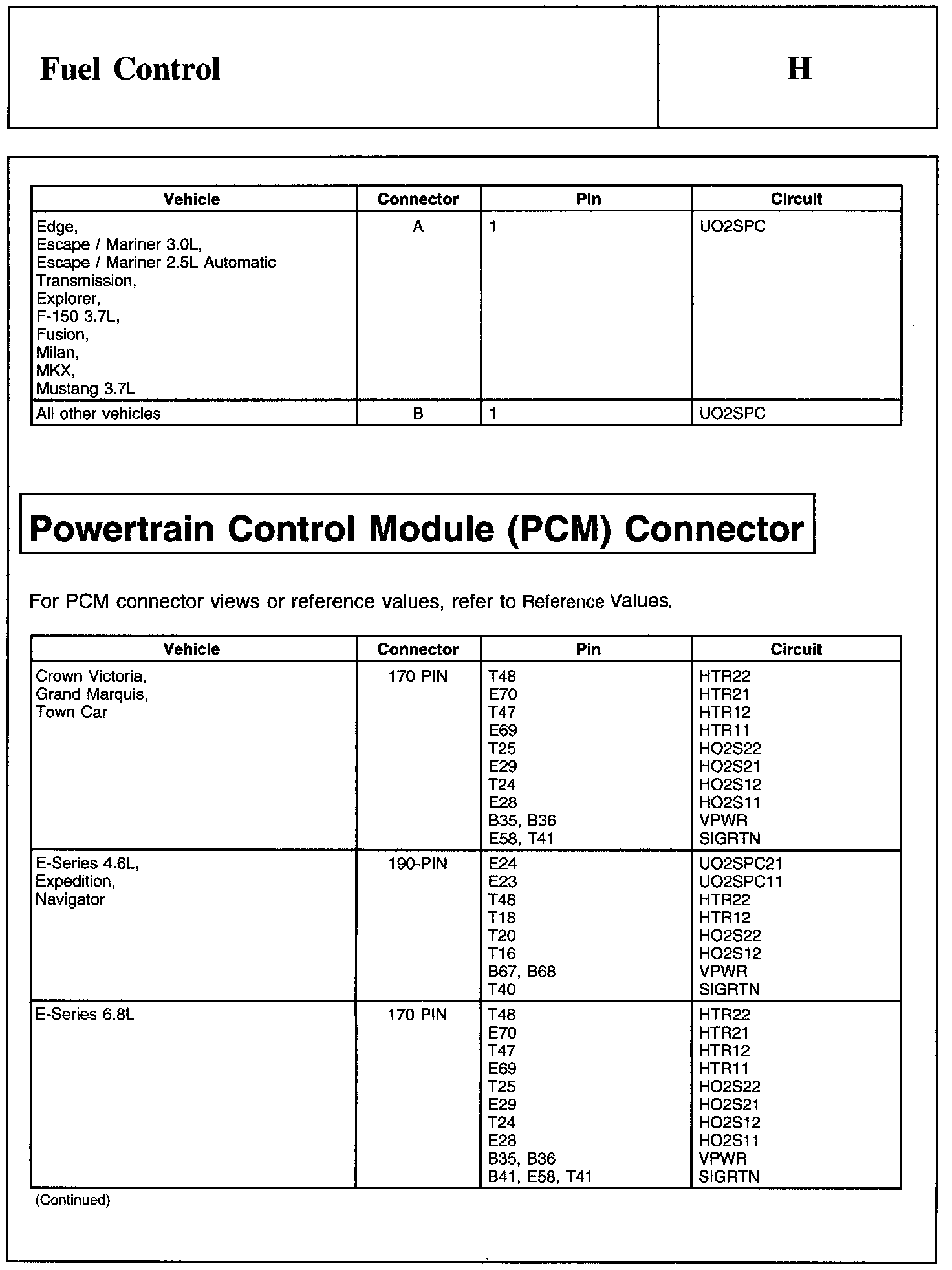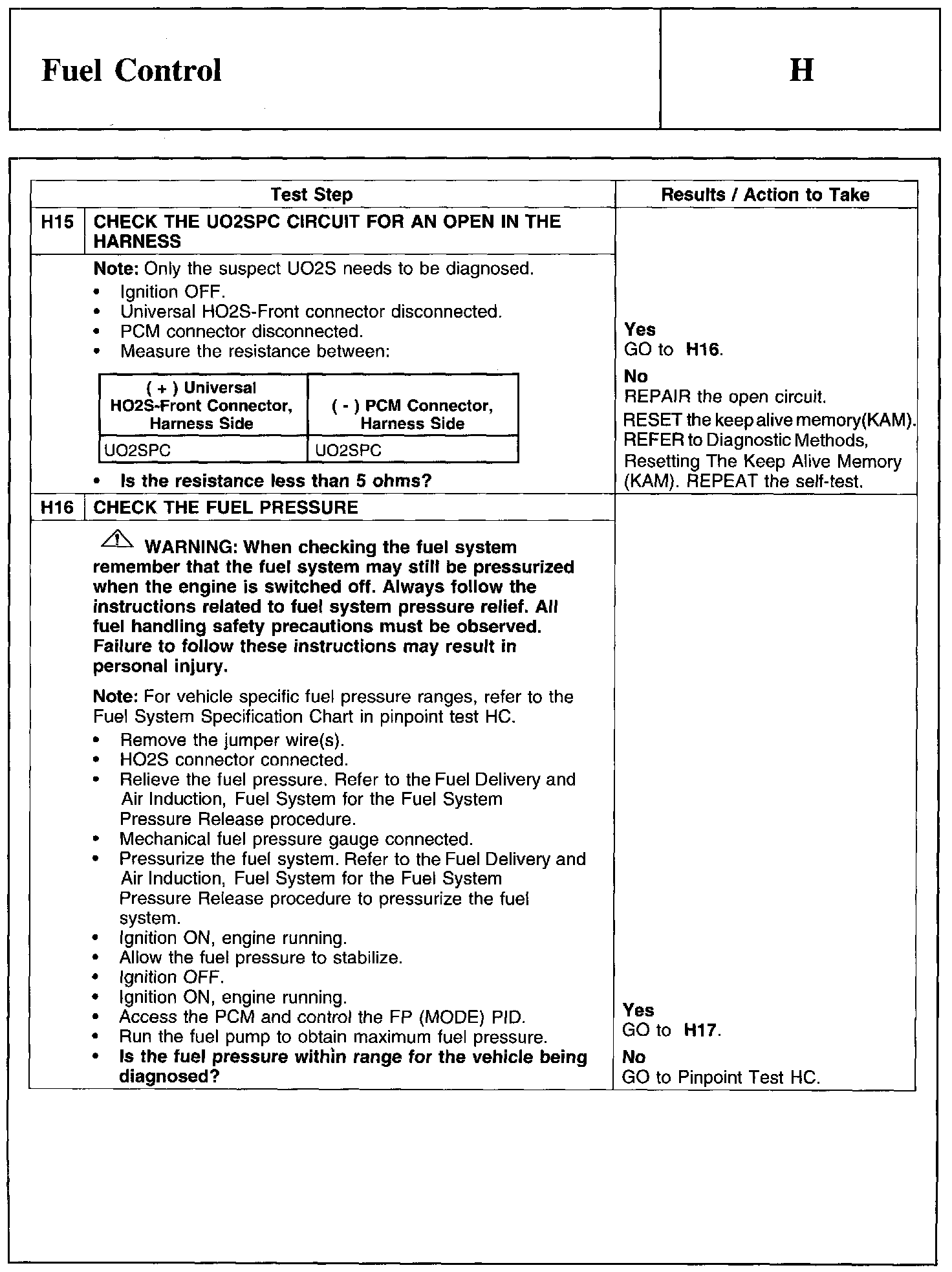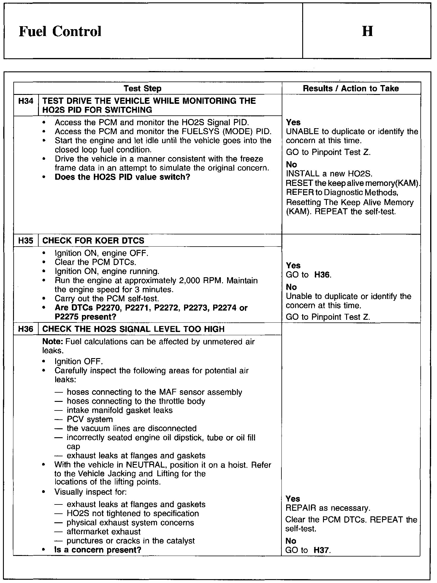 Home >> Ford >> 2011 >> Fusion FWD L4-2.5L >> Repair and Diagnosis >> Powertrain Management >> Computers and Control Systems >> Testing and Inspection >> Pinpoint Tests >> Test H: Fuel Control
