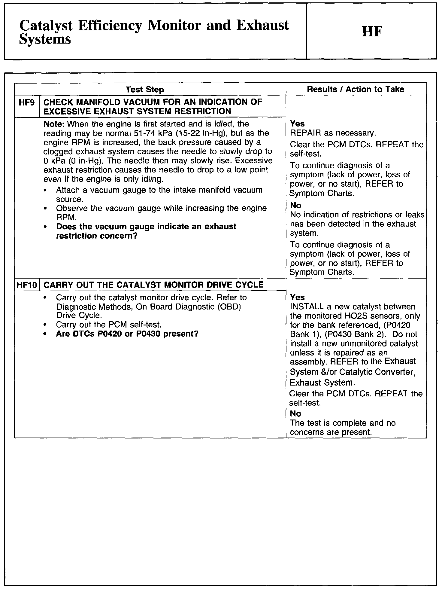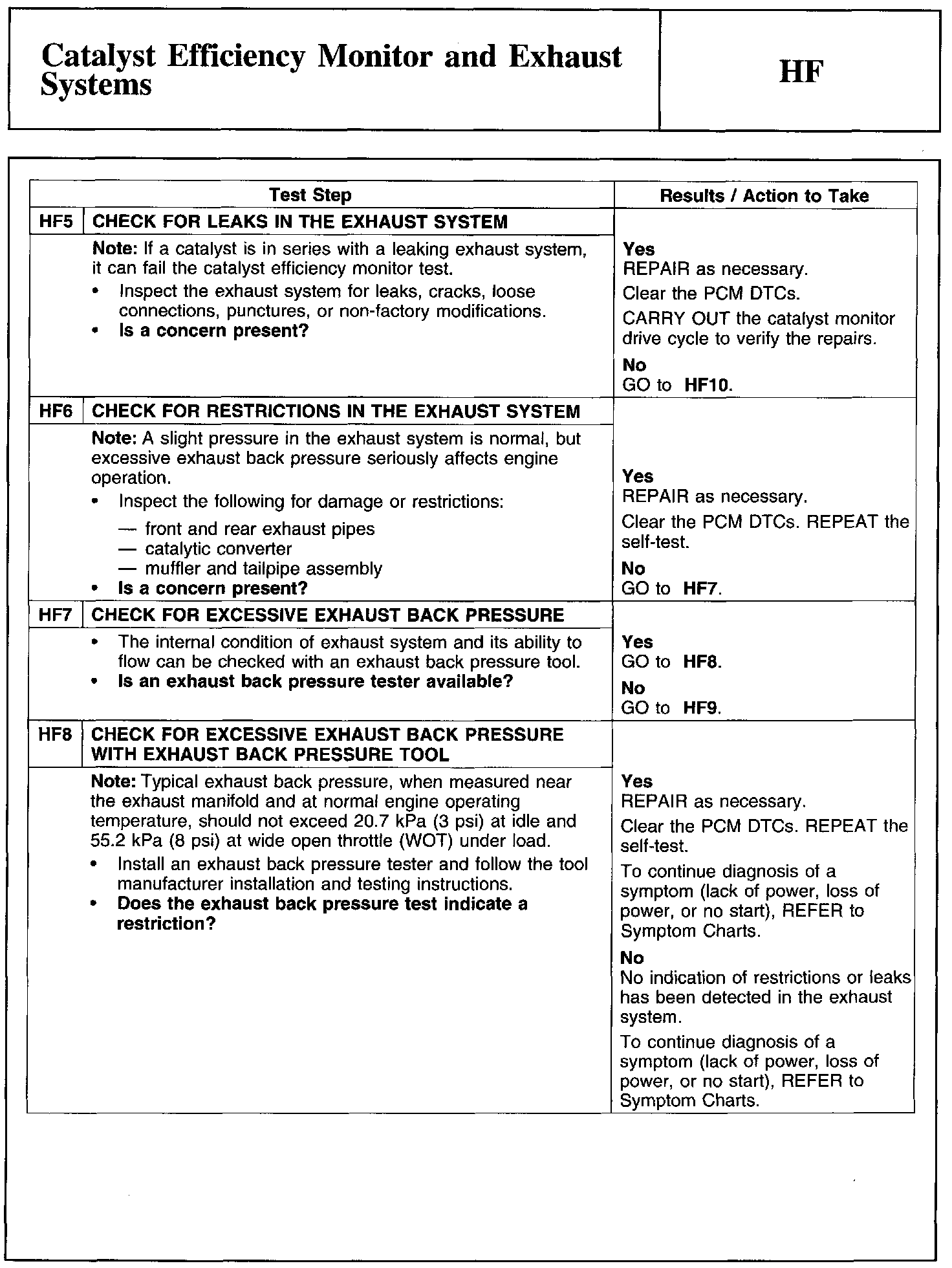 Test HF: Catalyst Efficiency Monitor and Exhaust Systems