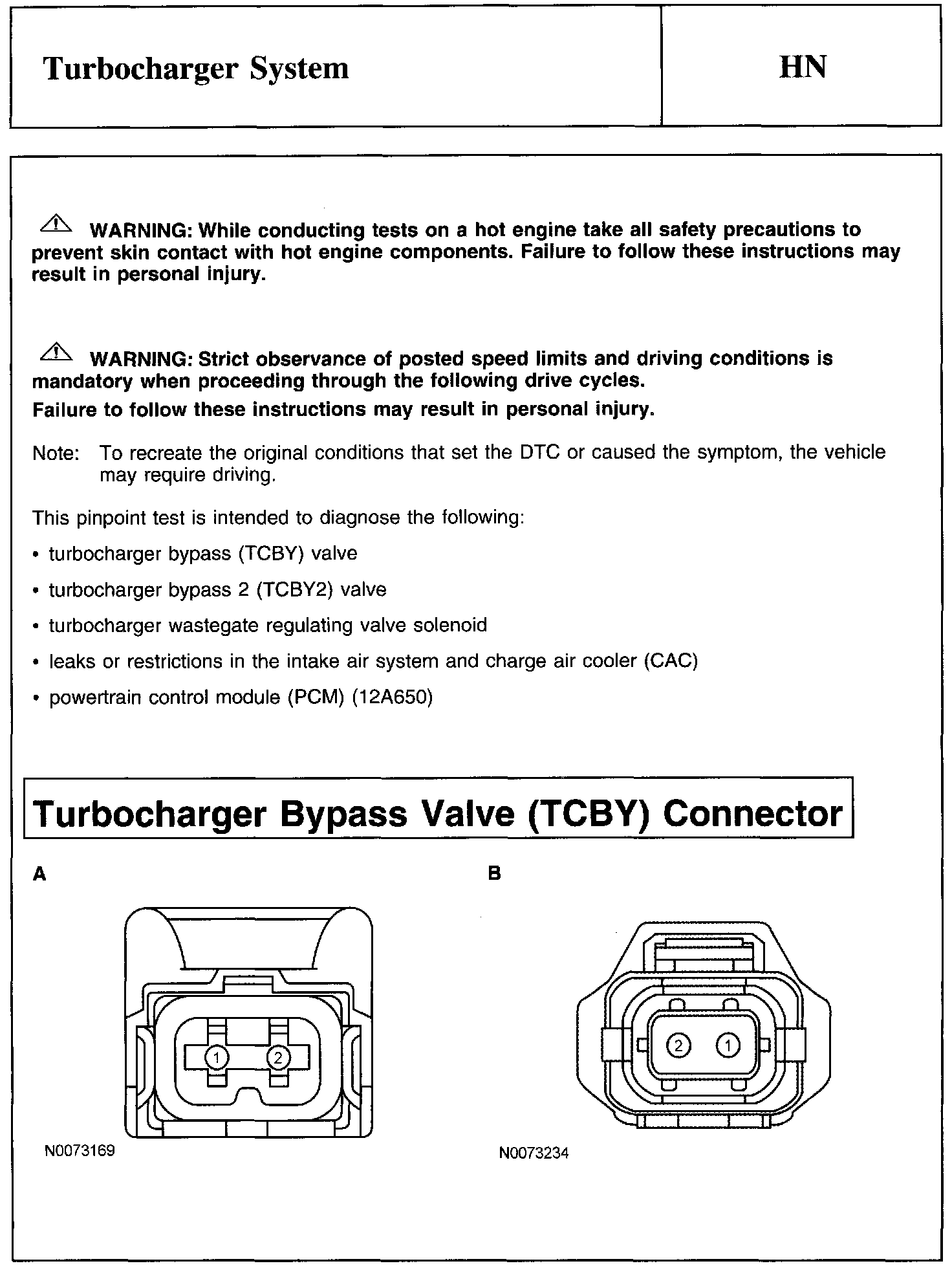 Warnings, Note And Turbocharger Bypass Valve (TCBY) Connector: