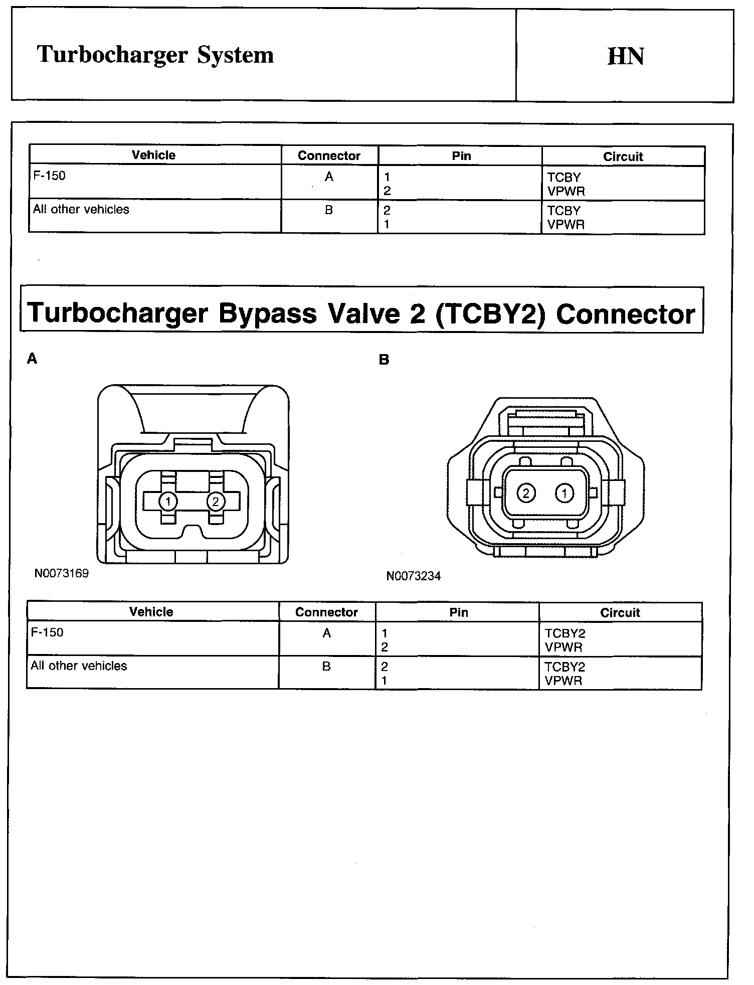 Turbocharger Bypass Valve (TCBY) Connector And Turbocharger Bypass Valve 2 (TCBY2) Connector: