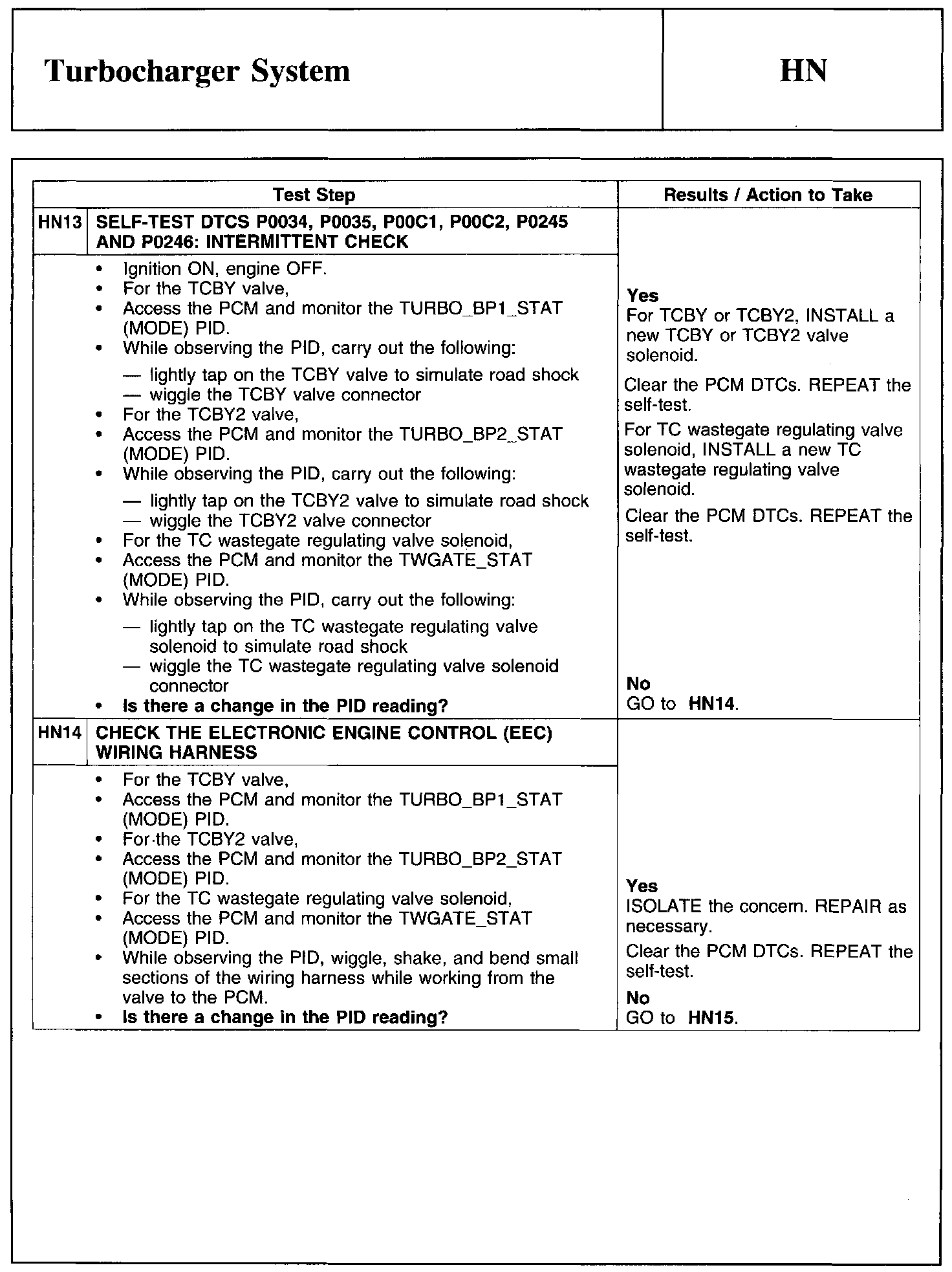 PINPOINT TEST HN: TURBOCHARGER SYSTEM