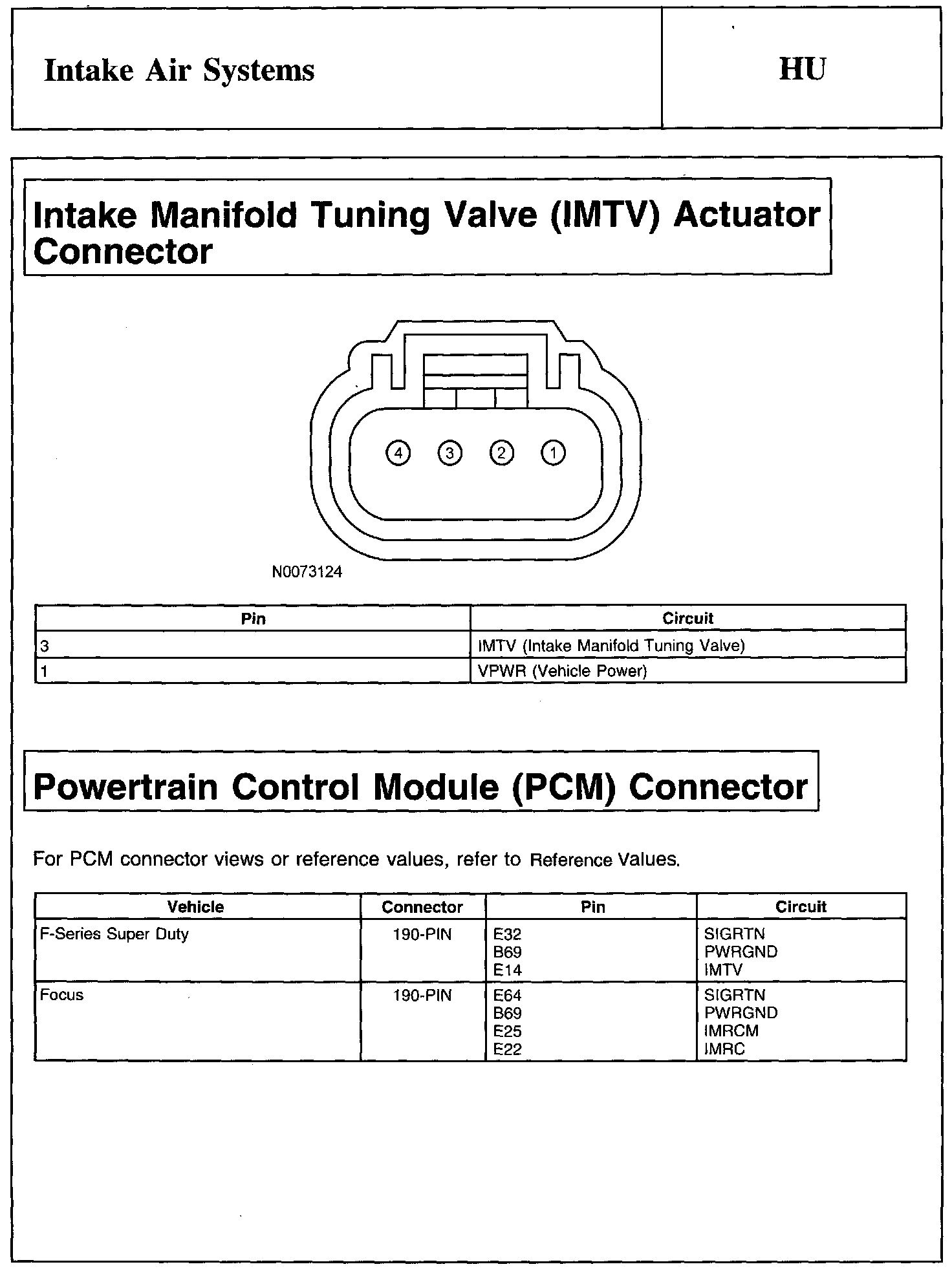 Intake Manifold Tuning Valve (IMTV) Actuator Connector And Powertrain Control Module (PCM) Connector: